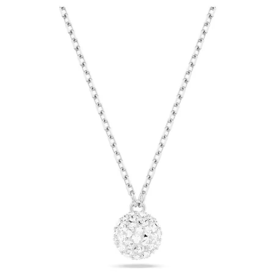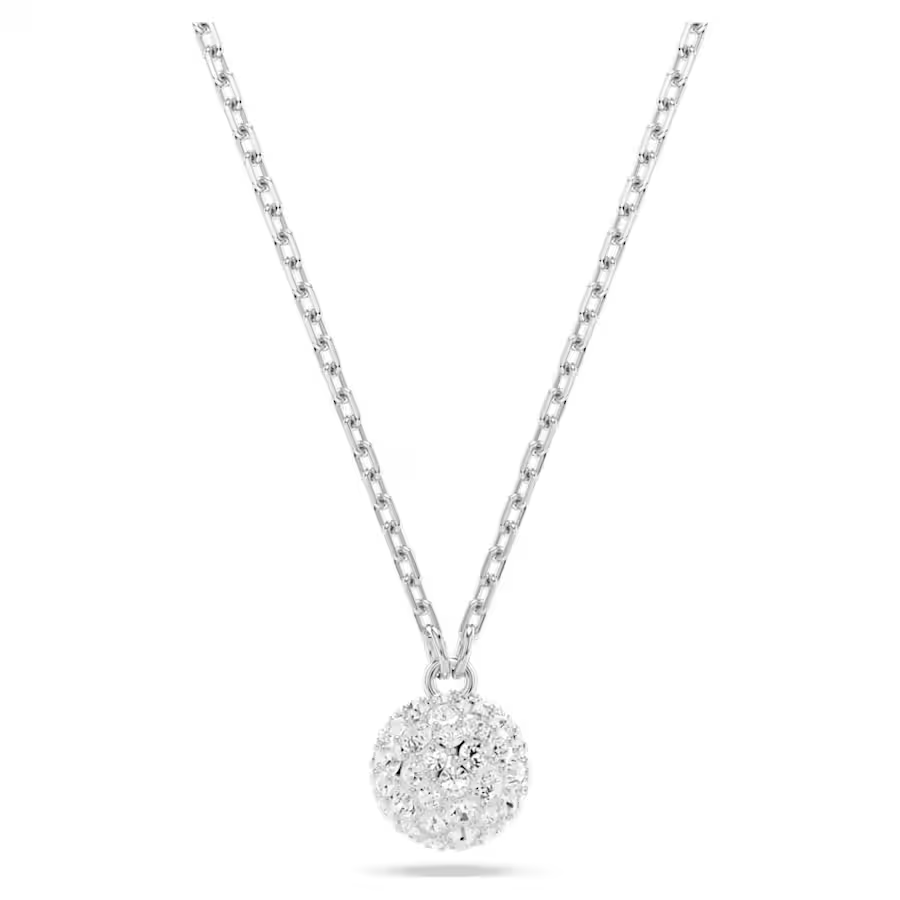 Shimmering like a distant planet in the night sky, this rhodium plated pendant features a 3D sphere adorned with a pavé of clear crystals. Suspended from an elegant chain with a lobster closure, it’s a dazzling piece to wear solo or layer with equally imaginative Dextera pieces.