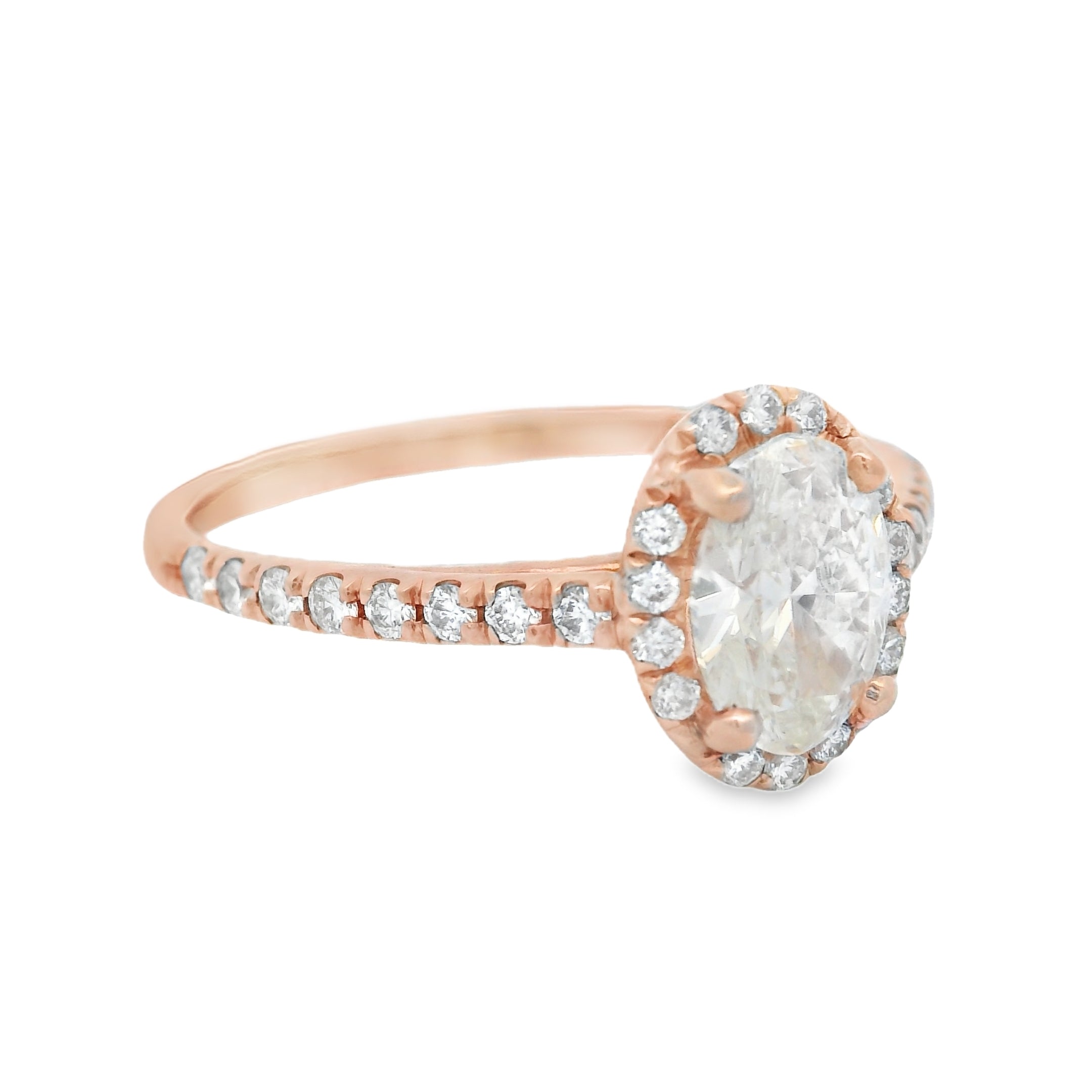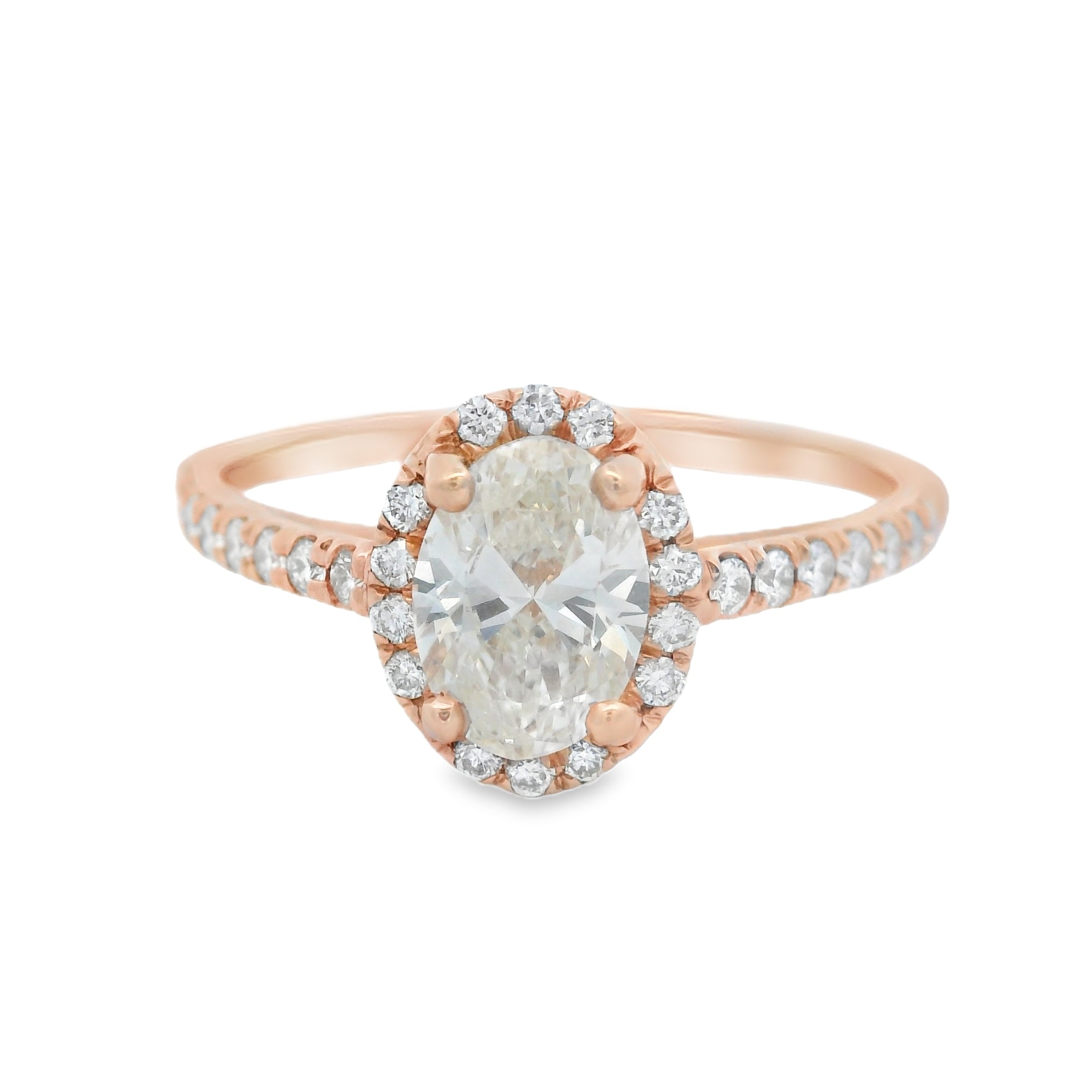 Certified Oval Halo Rose Gold Diamond Engagement Ring
