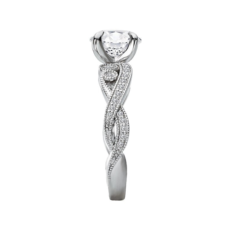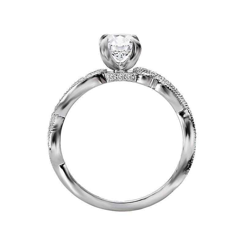 - Matching Band: Romance 160073-W (14K white gold, 1/6 carat total weight, milgrain design)
