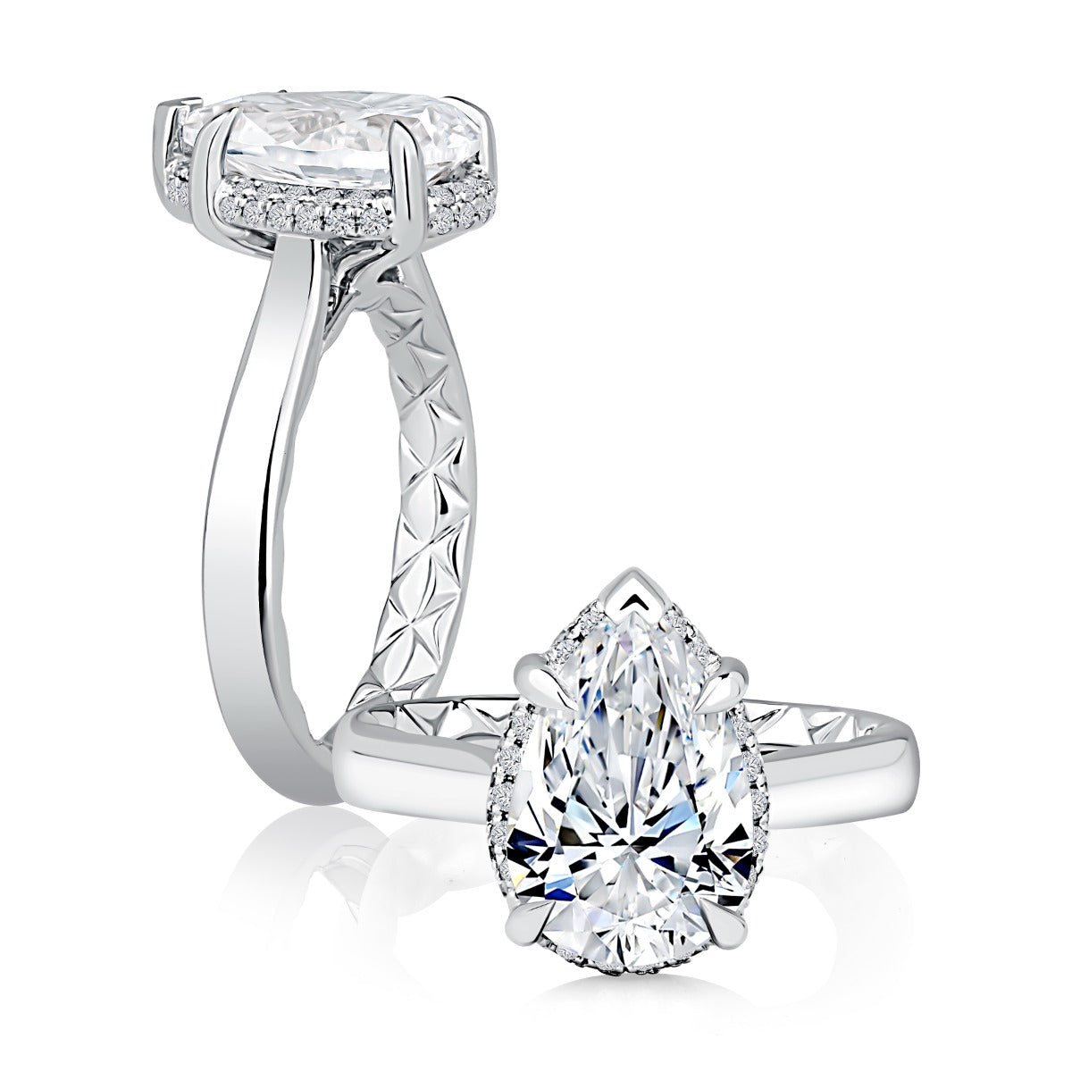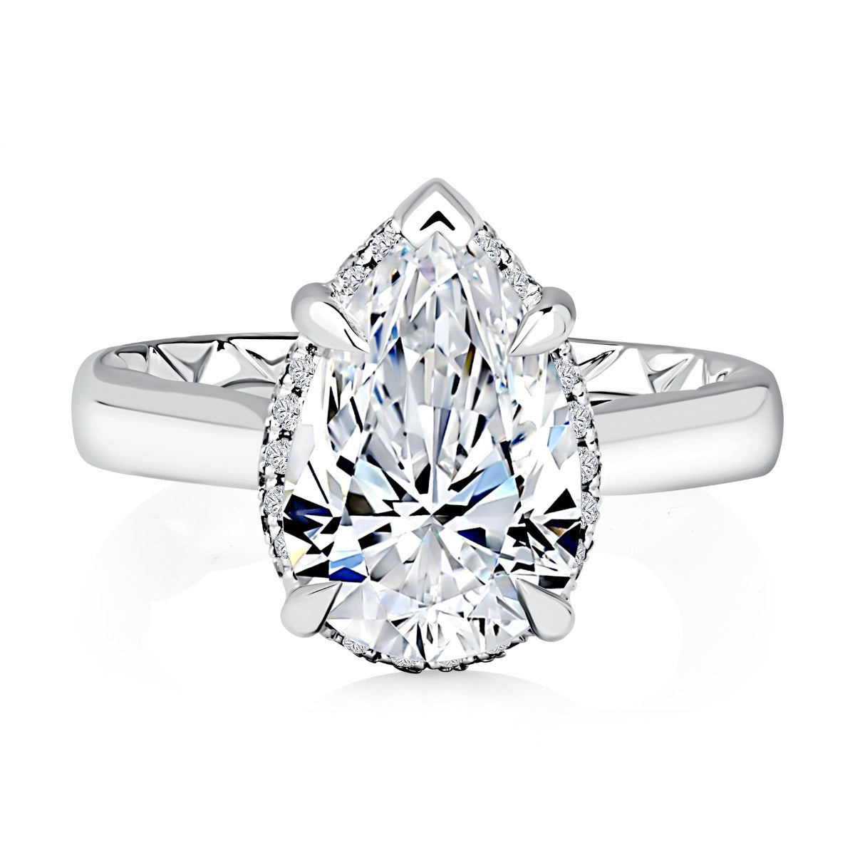 Four Prong Pear Diamond Engagement Ring with Hidden Halo and Quilts