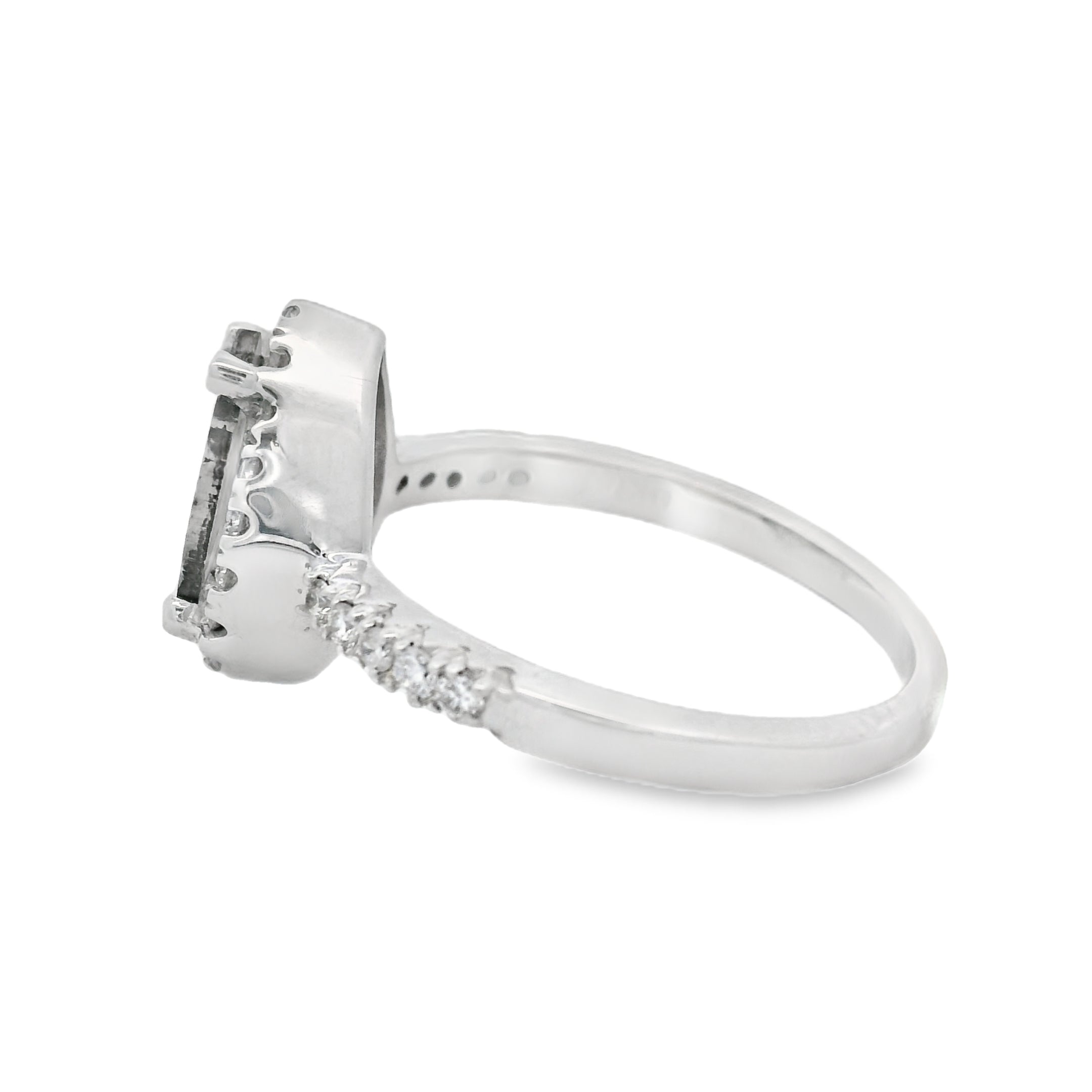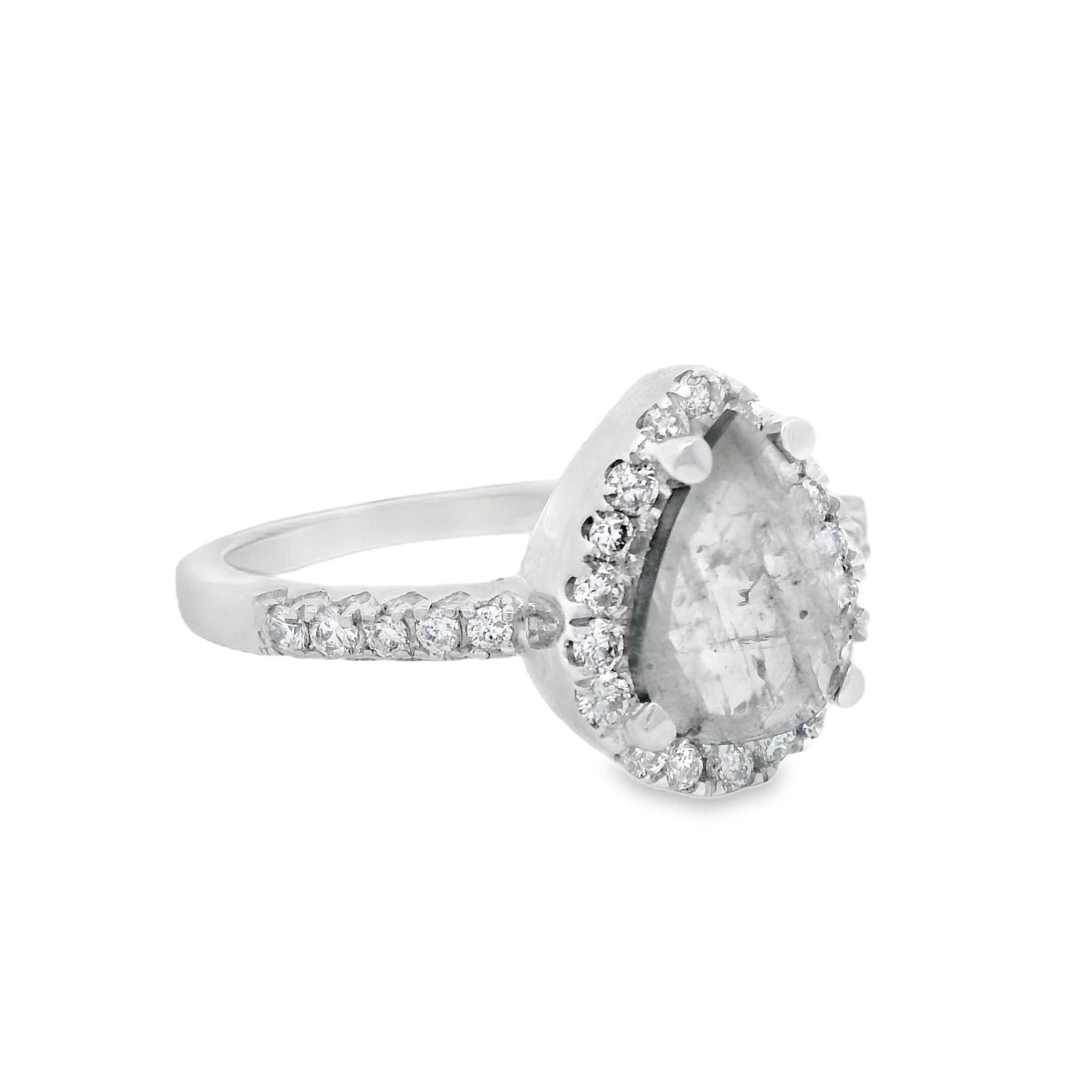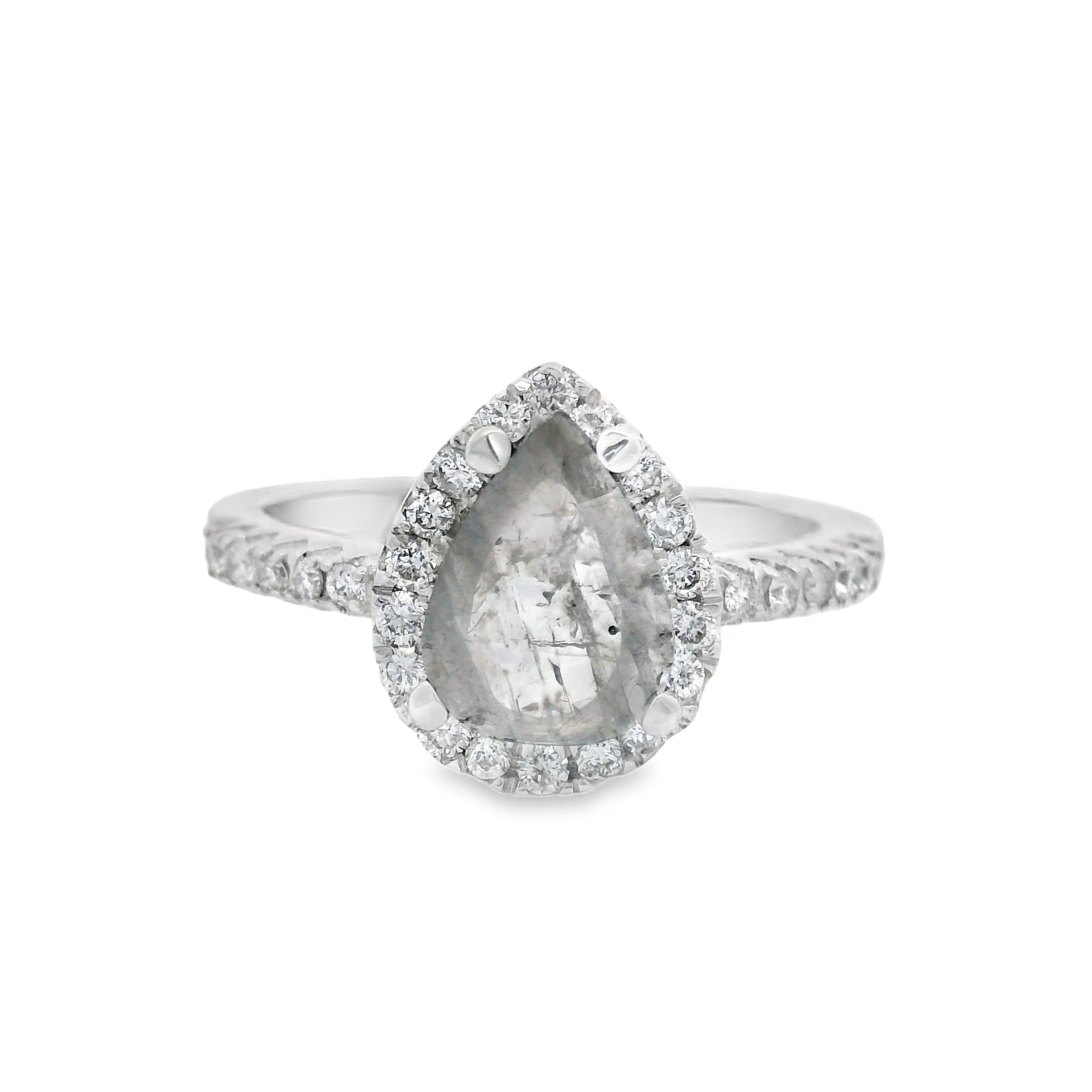 White Gold Salt And Pepper Pear Halo Diamond Engagement Ring
