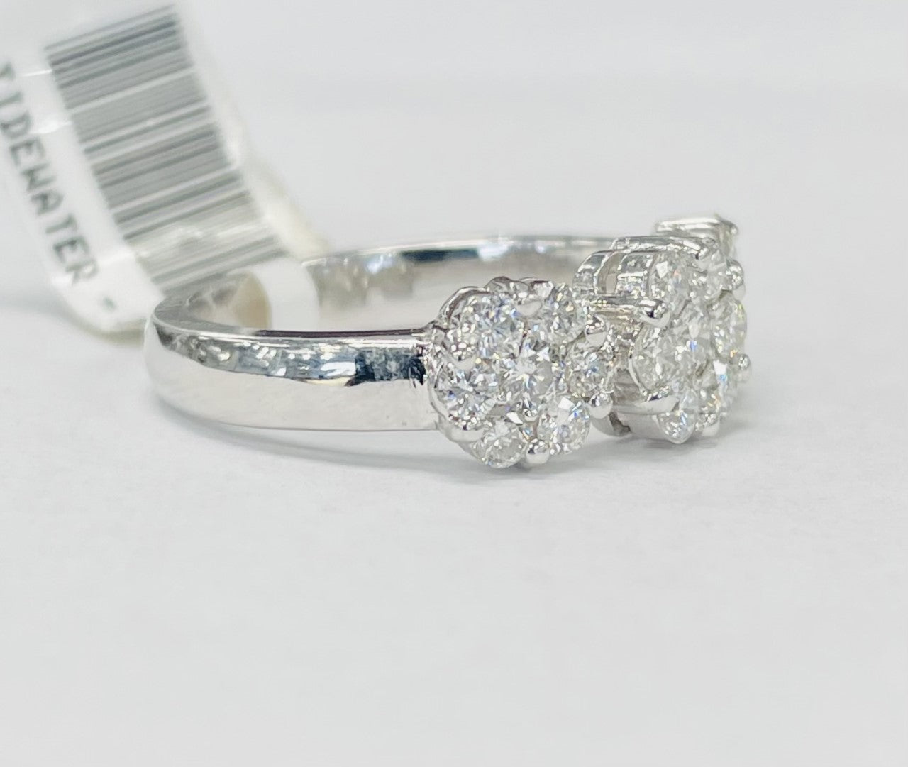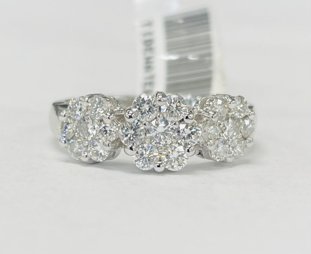 This phenomenal and stunning ring features three heads with a floral diamond design. Made out of white gold to really bring this ring to the next and have the diamonds dazzling at all times. With a plethra of diamonds and a thick shank this ring is perfect for that natural lover in your life!