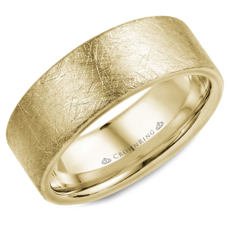 The CrownRing Classic Diamond Brushed Wedding Band WB-025C8Y is a timeless piece designed for elegance and durability. Crafted in 18K Yellow Gold with a diamond brushed finish and polished edges, this 8MM band embodies sophistication and comfort. Perfect for daily wear, it is available in multiple precious metals to suit your personal style. Crafted with a diamond brushed finish, this 8mm band is elegance you’ll wear every day.
