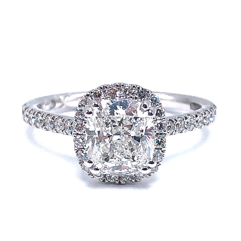 A.Jaffe Engagement Ring 1.50Ct Cushion GIA With .38Ctw Halo & Band In 14K White Gold