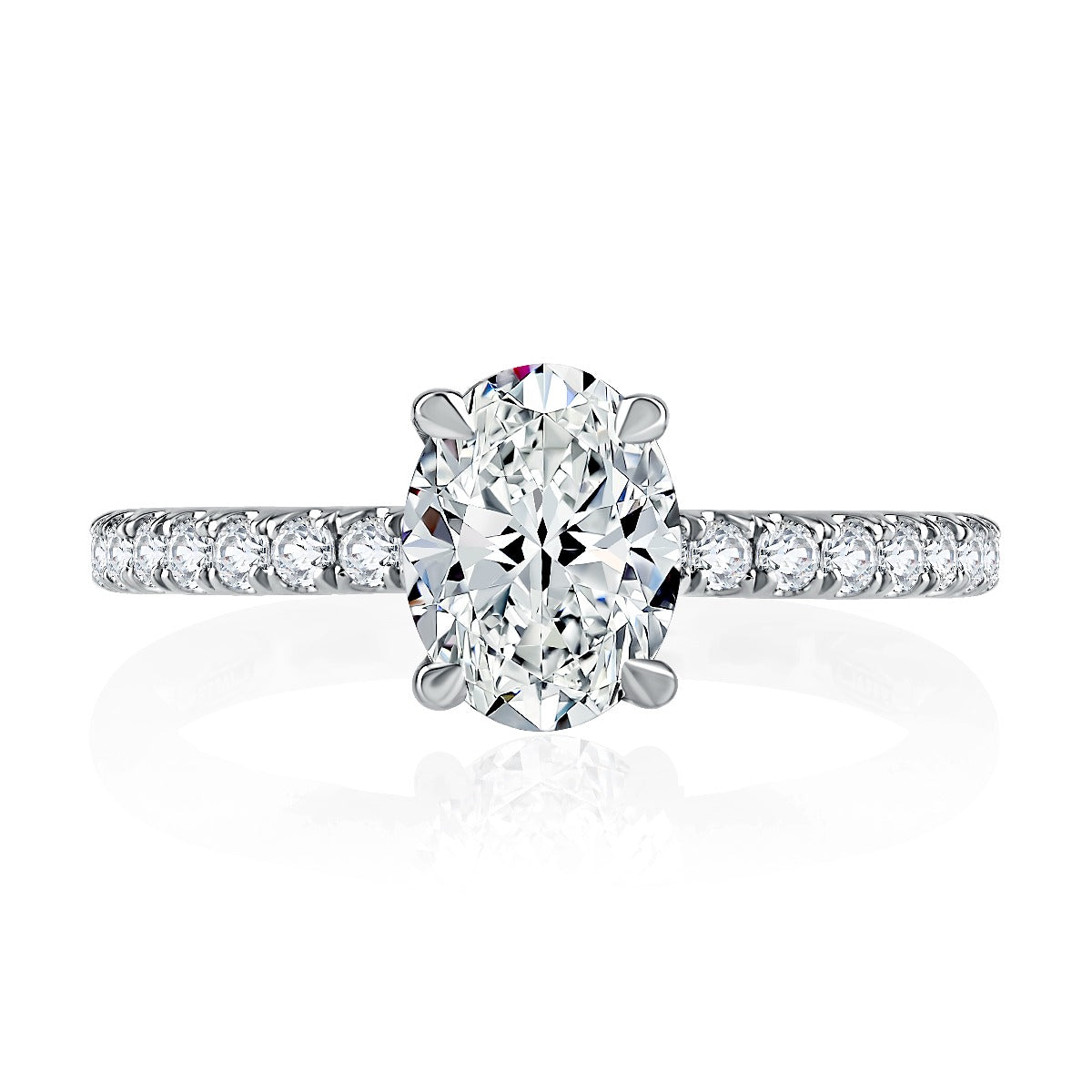 • 14K White Gold 0.44cttw Side & Hidden Halo Diamond Engagement Ring Setting for an Oval 2.00ct Center Stone.