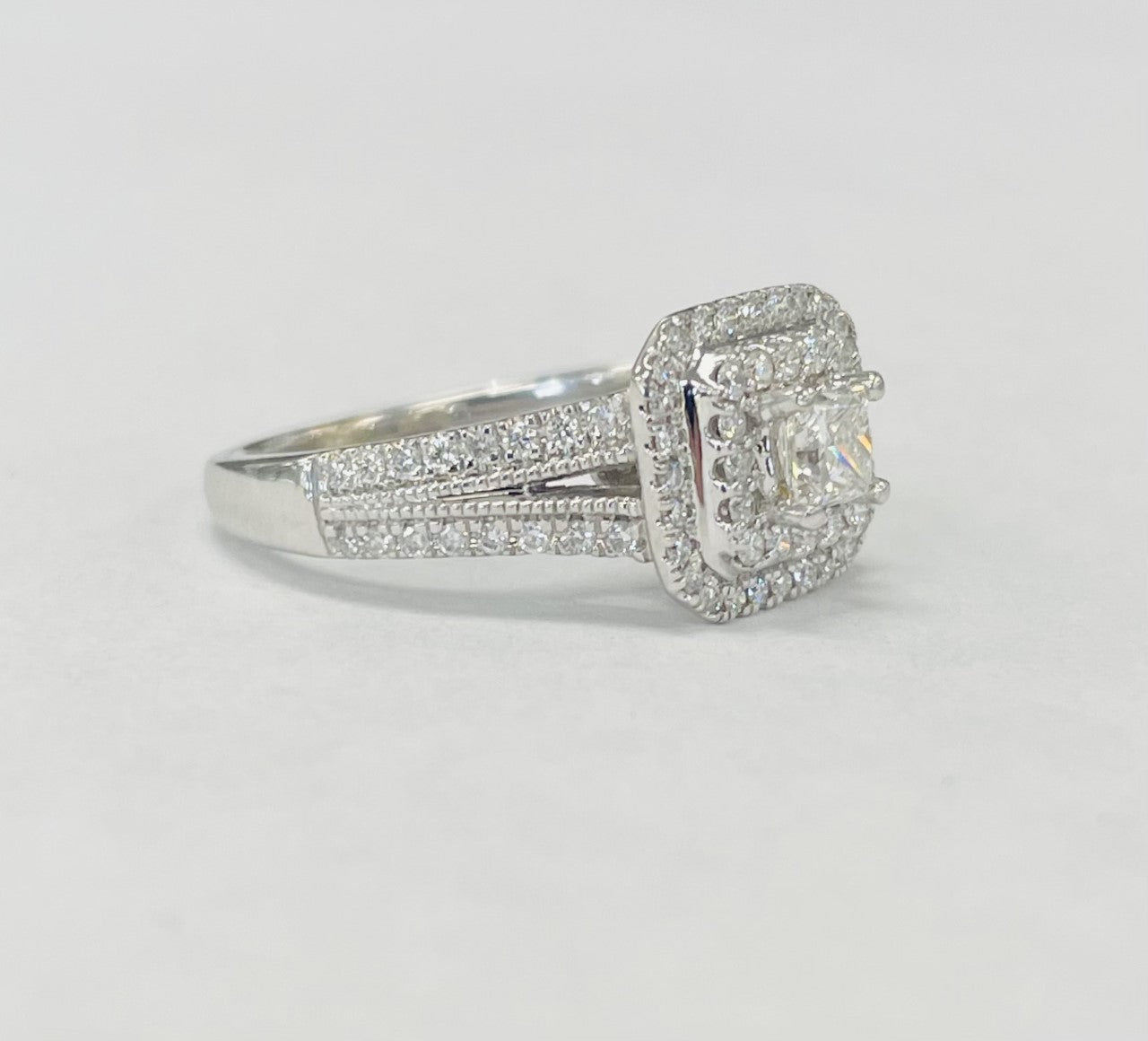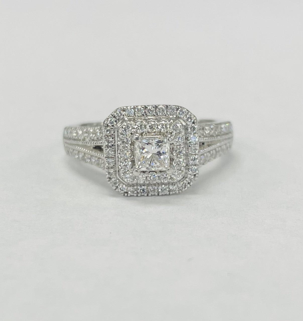 Double Halo Princess Cut 1CTW Diamond Engagement Ring