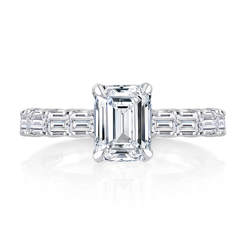 Emerald Cut Diamond Engagement Ring with East West Emerald Diamond Accents Band