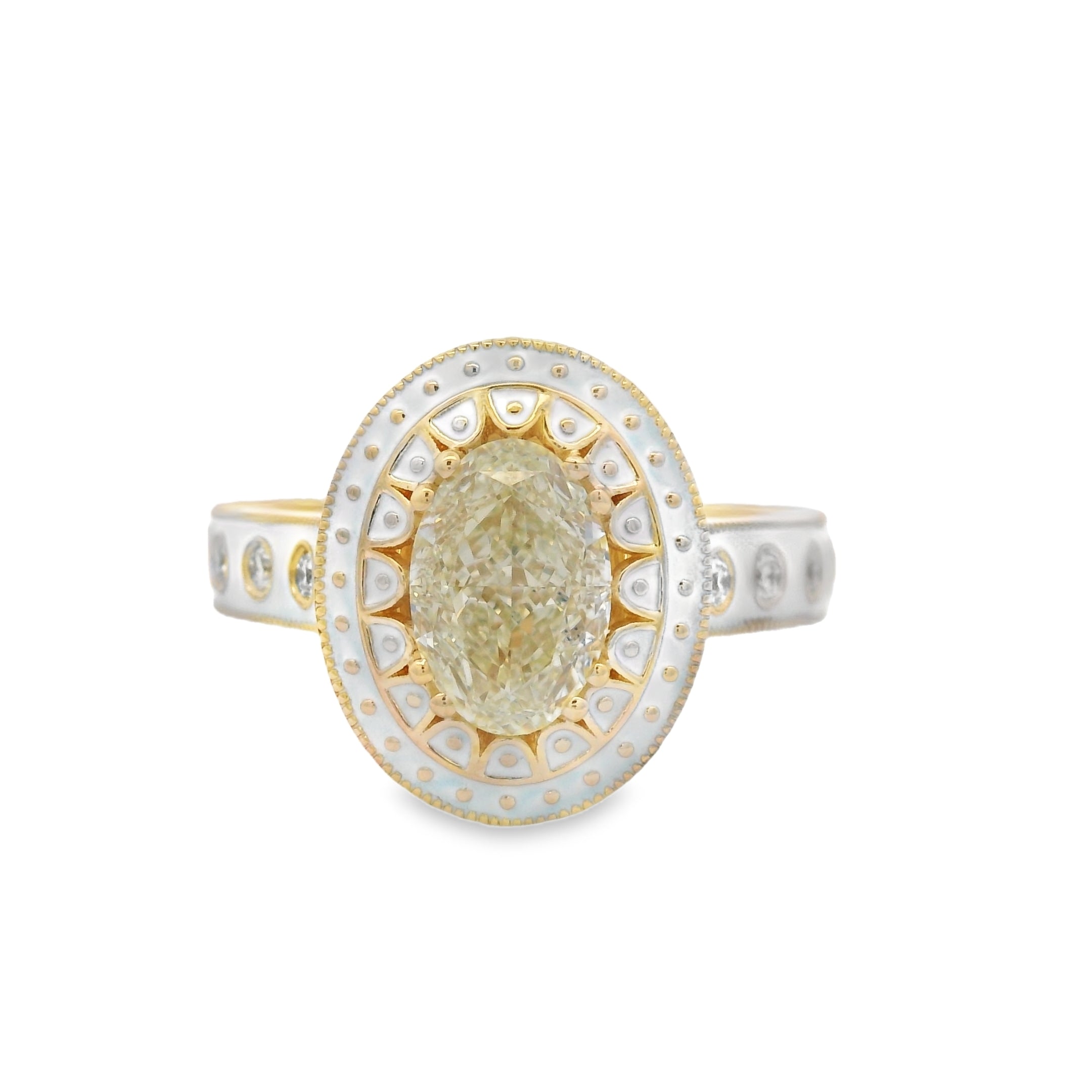Noam Carver NCAW-06YM-200A-C 14K Yellow Gold & White Enamel Oval Diamond Ring with Accent Diamonds