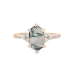 Discover the beauty of nature with this exquisite green moss agate ring. The unique stone features intricate patterns that resemble a lush forest, making it a perfect statement piece for any occasion. Set in a delicate white gold band, this ring combines elegance with a touch of earthy charm.