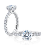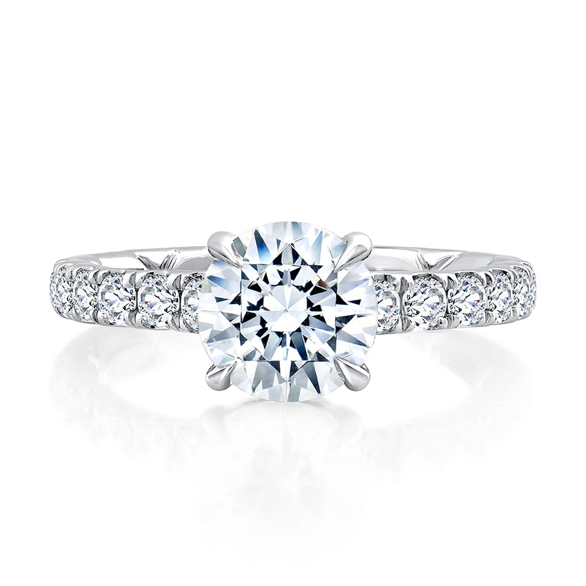 From the A.JAFFE Classics Collection, this round cut engagement ring features a hidden halo and shared prong diamond band.The classic style interior features a petite version of the A.JAFFE Quilt, expertly handcrafted with beauty and luxury in mind.