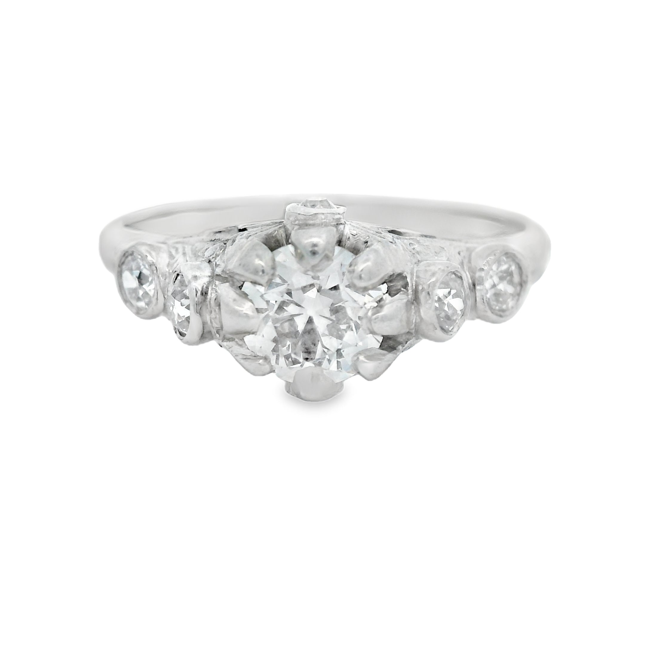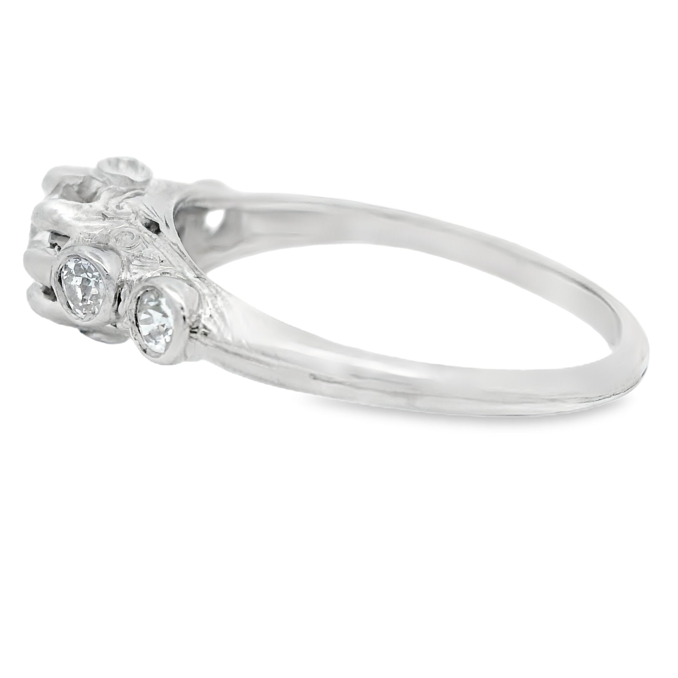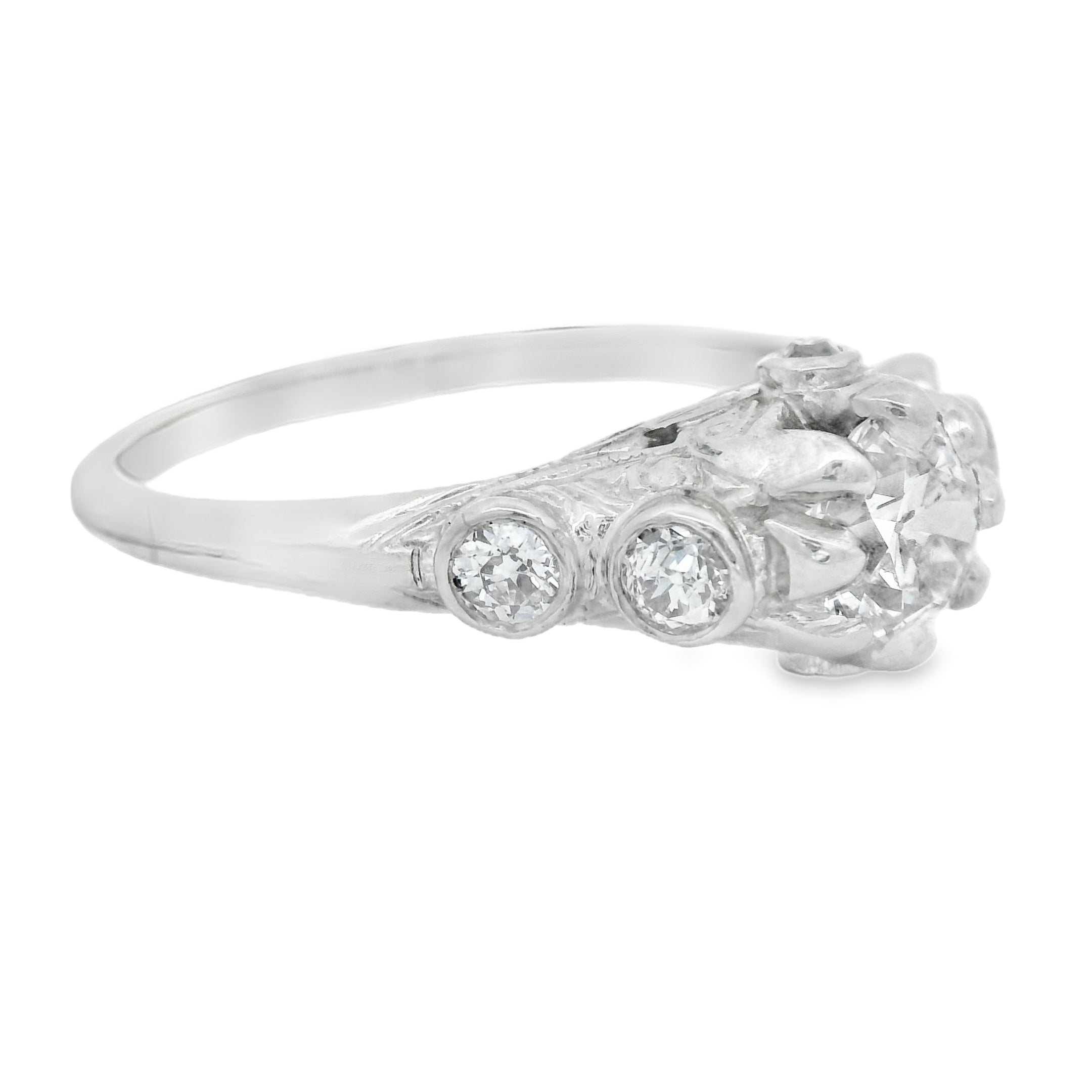 Vintage Platinum Five Stone European Cut Diamond Ring