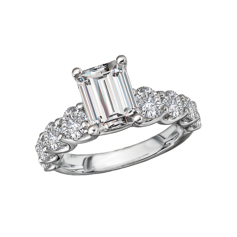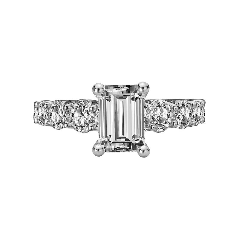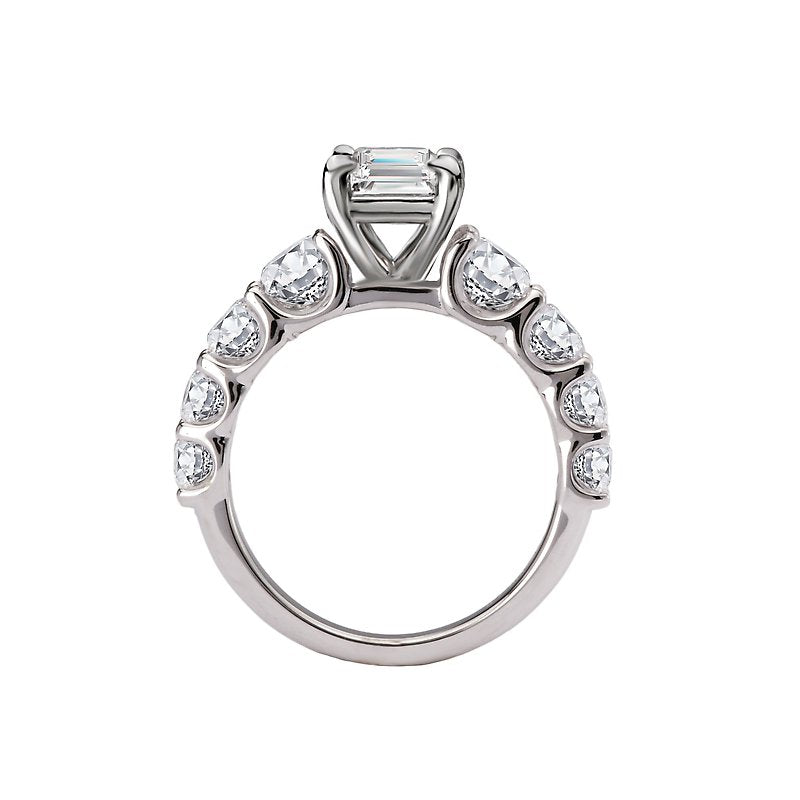 - Center Stone: Not included (semi-mount); accommodates an 8.5 x 6.5mm emerald-cut diamond