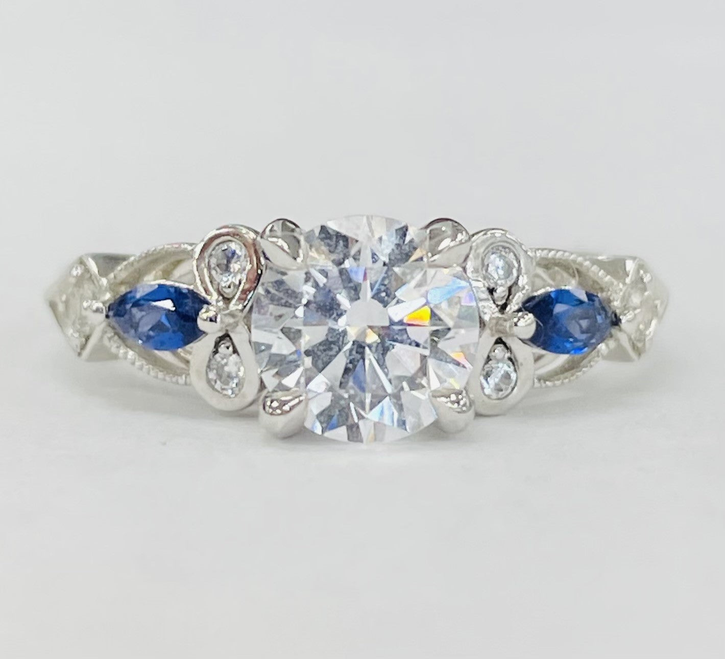Romance - Floral Inspired Sapphire And Diamonds Setting