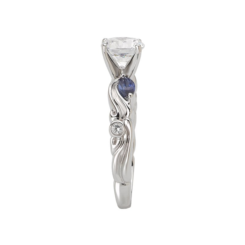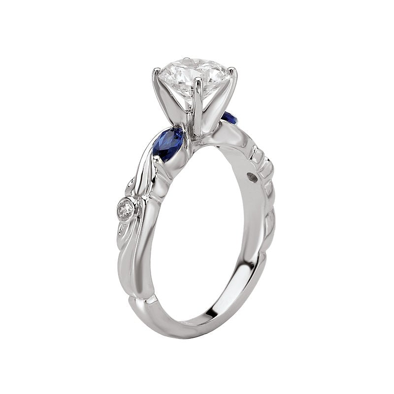 Sapphire and Diamond Engagement Ring in 14kt White Gold with a peg head setting. (D.04 carat weight and S. 1/5 carat weight) This peg head is a SEMI-MOUNT and it comes with NO CENTER STONE as shown but it will accommodate a 6.5mm round center stone.