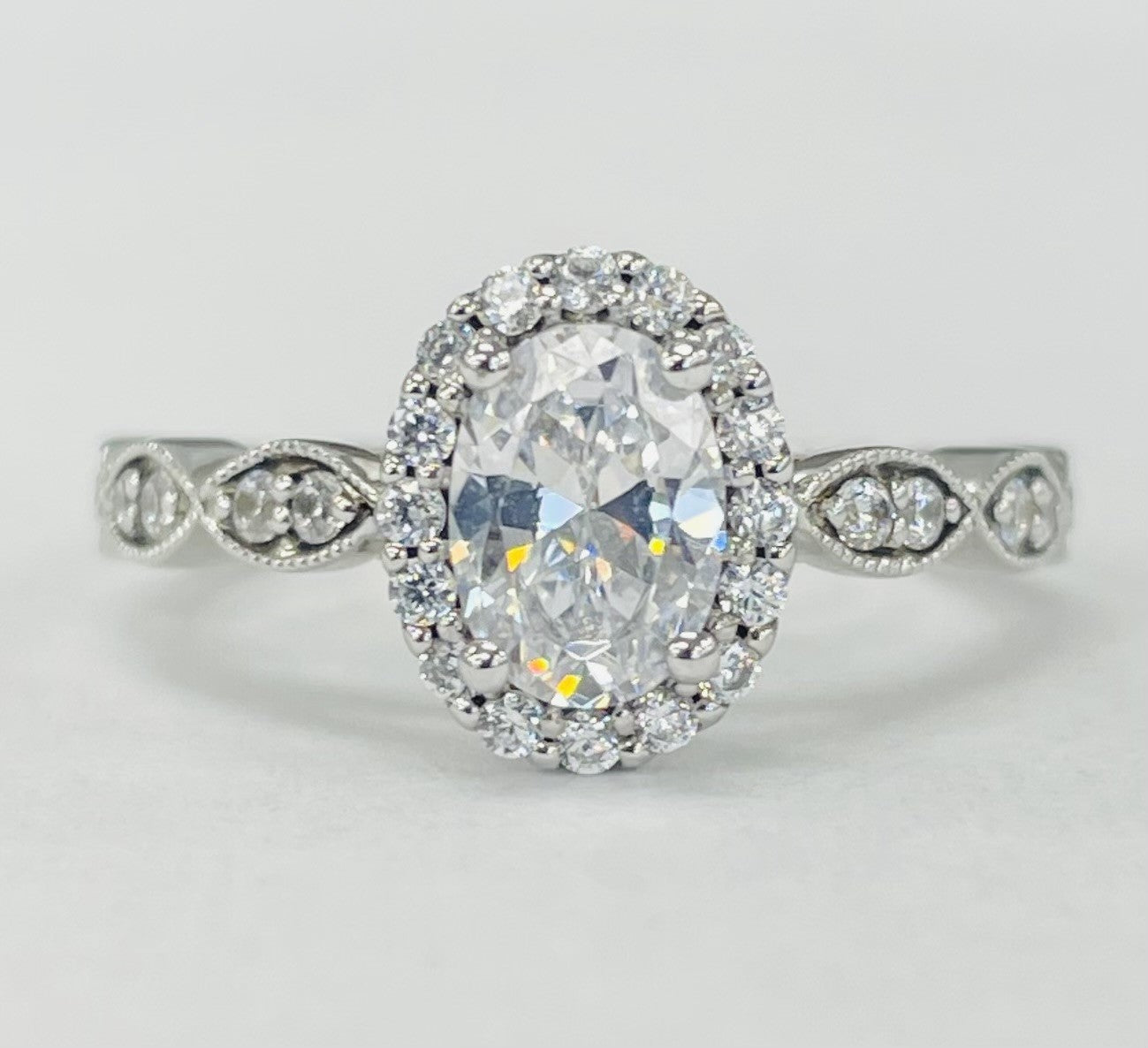 Romance - Oval Halo Diamond And Scalloped Accent Setting