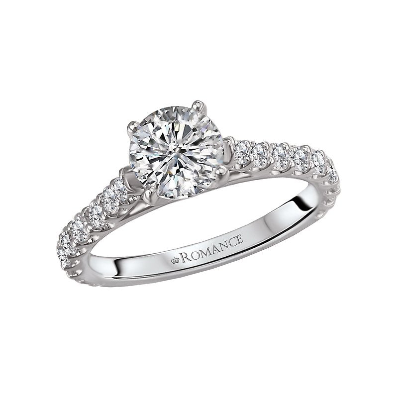 - Matching Band: Romance 117075-WK (½ carat total weight, 14K white gold)