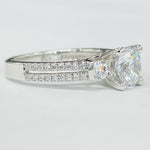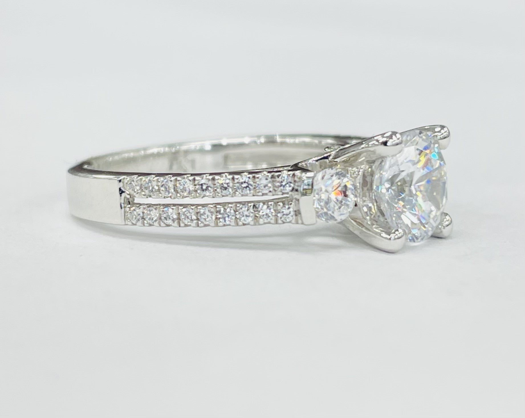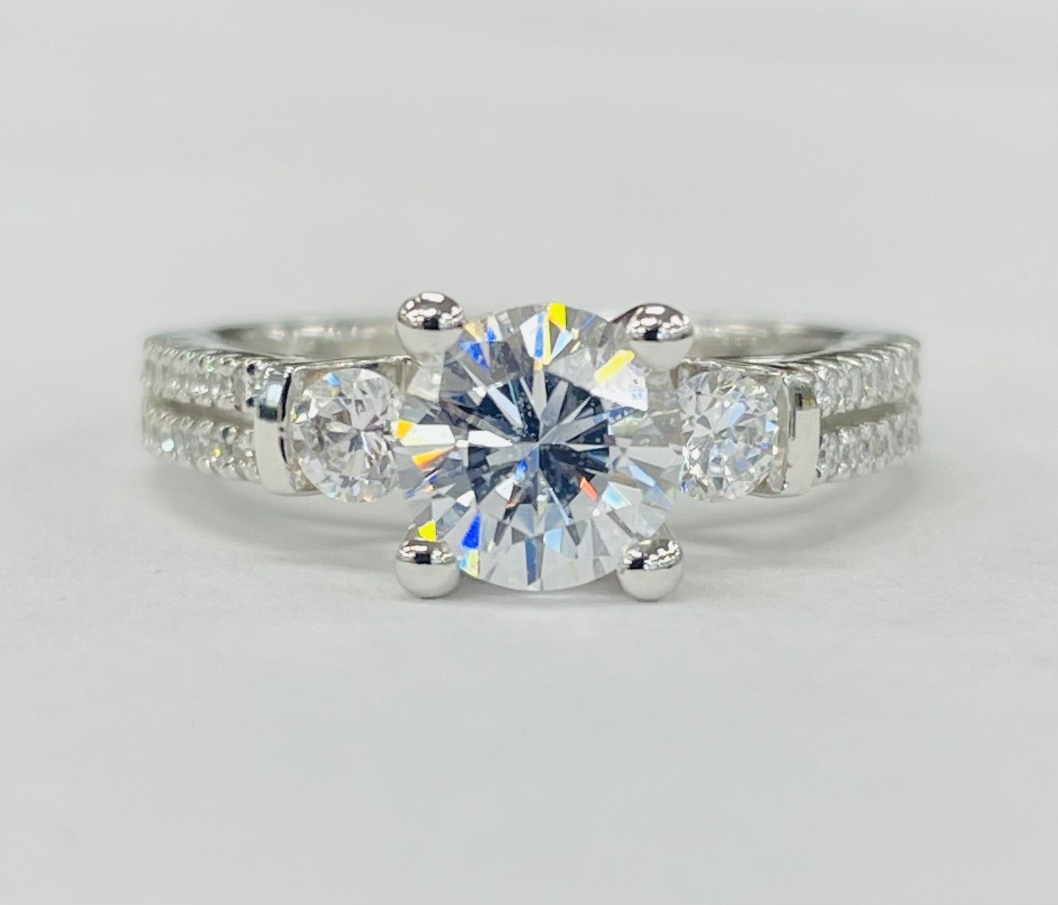 This double shank three stone diamond setting is not only a unique but also stylish. With a plethra of accent diamonds to make this setting sparkle just like she does.