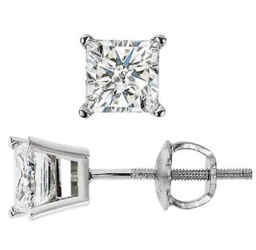 1 1/3 Carat Princess Cut Martini Diamond Stud Earrings