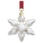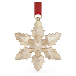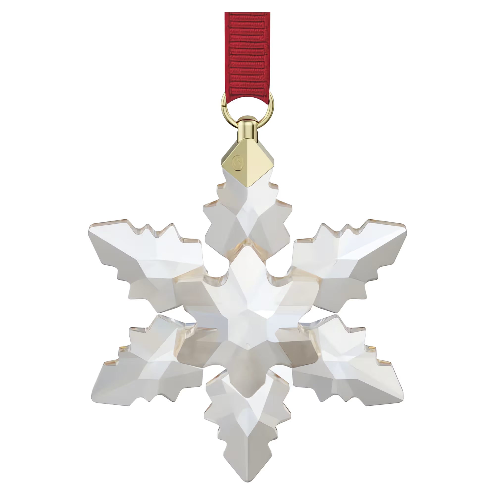 Our beloved tradition of Annual Edition Ornaments continues in 2024 with this beautiful snowflake. Emitting a warm glow throughout the festive season, the gold-tone design is finely crafted with 133 facets and hangs from a red grosgrain ribbon. Perfect for displaying on your tree, in a window, or alongside our elegant Christmas Ornament Home Displays or Bell Jars. Decoration object. Not a toy. Not suitable for children under 15.