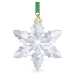 Our much-loved tradition of Annual Edition Ornaments continues in 2024 with this beautiful snowflake creation. Finely crafted with 133 facets, the clear design offers a fresh interpretation of the classic festive motif. Hanging on a green ribbon, the geometric piece features a gold-tone metal snowflake tag, which is engraved with the year and embellished with a small chaton. Use it to decorate a tree, hang in a window, or show alongside one of our elegant Christmas Ornament Home Displays or Bell Jars. Decoration object. Not a toy. Not suitable for children under 15.