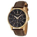 Citizen BU2013-08E Corso Eco-Drive – Men’s Rose Gold Stainless Steel Black Dial Brown Leather Multifunction Watch