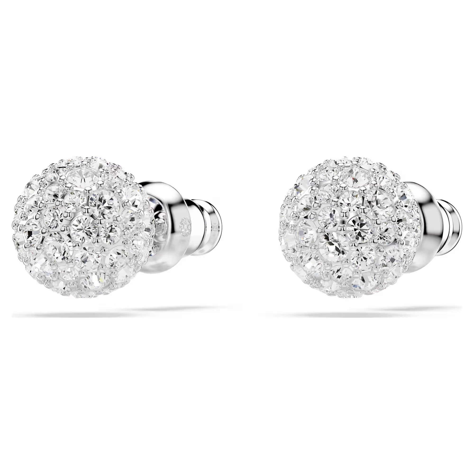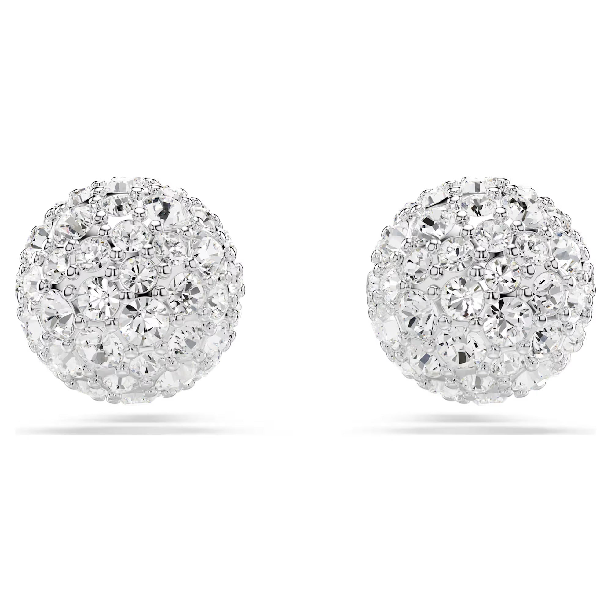 Blending playful geometry with shimmering light, these Dextera studs were made for joyful styling. Each sphere is rhodium plated and amplified with offset pavé and mixed sizes of crystals. Wear them together for symmetrical sophistication or mix and match with the star-shaped studs from the same multifaceted family.