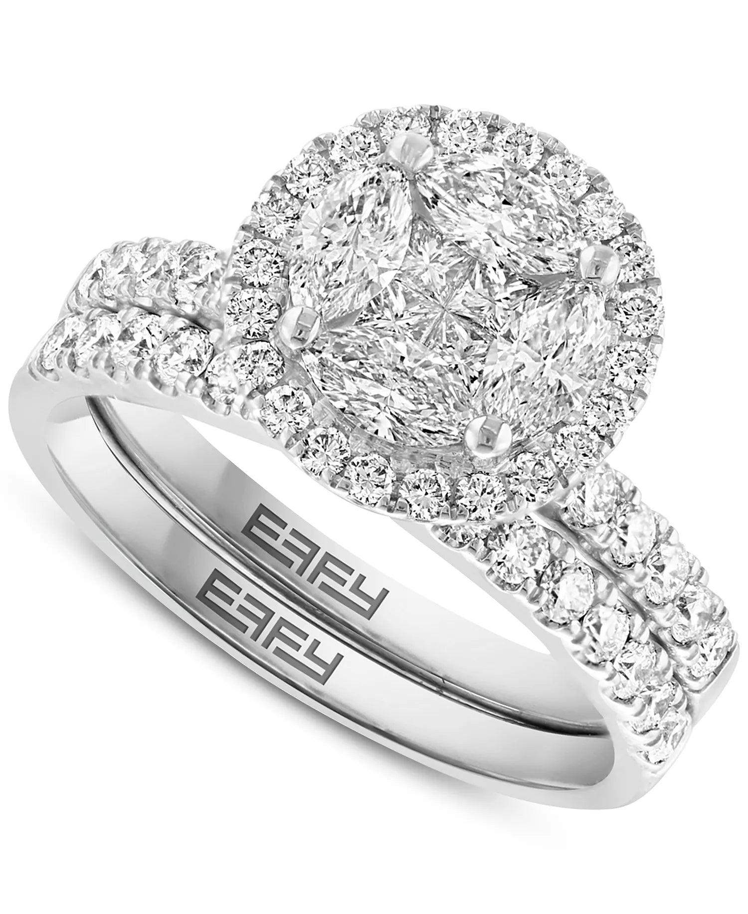 EFFY® delivers utter elegance and over-the-top sparkle with this stunning diamond bridal set. The engagement ring is set with a center cluster of princess-, marquise-, and round-cut diamonds. Brilliant accent diamonds are set along its shank and incorporated into the fitted wedding band.