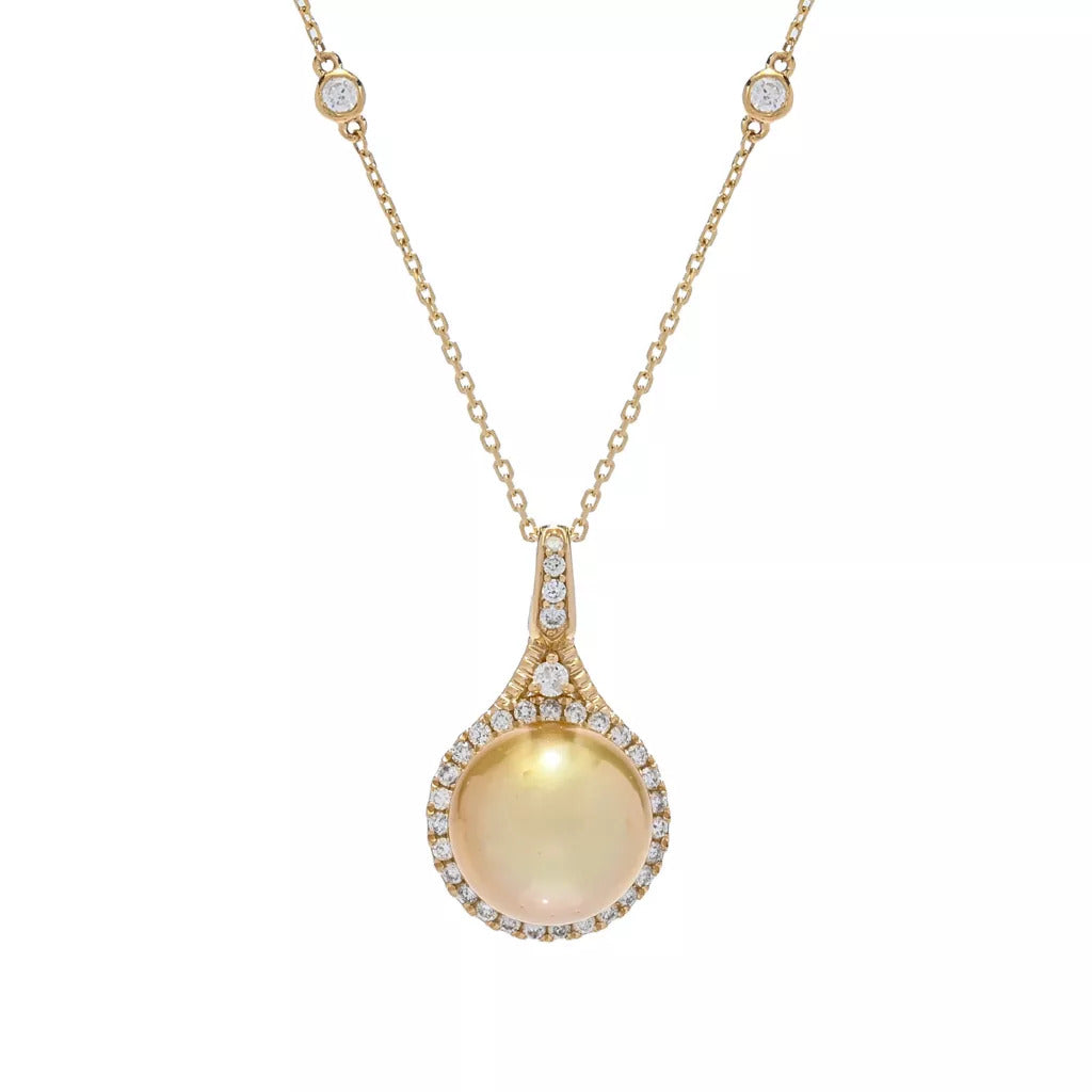 CIRARI 14K Gold 11mm Golden South Sea Cultured Pearl & Diamond Pendant w/ Chain