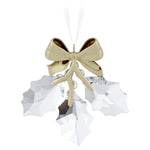 A truly elegant addition to your festive décor, this holly leaves ornament is a refined choice. The design is illuminated with 868 facets and features a stunning champagne gold-tone metal bow attached to a white grosgrain ribbon. Seven additional crystals are also included, representing berries. Add this piece to your tree to create a shimmering spectacle. Decoration object. Not a toy. Not suitable for children under 15.