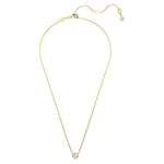 Embrace an effortlessly elegant look with this radiant Imber pendant. Worn on a delicate chain with a lobster closure, the gold-tone plated design features a central round crystal in a puffy bezel setting. A single Swarovski Zirconia is also placed in the elongation for added luxury. Wear this piece to perfect refined style.
