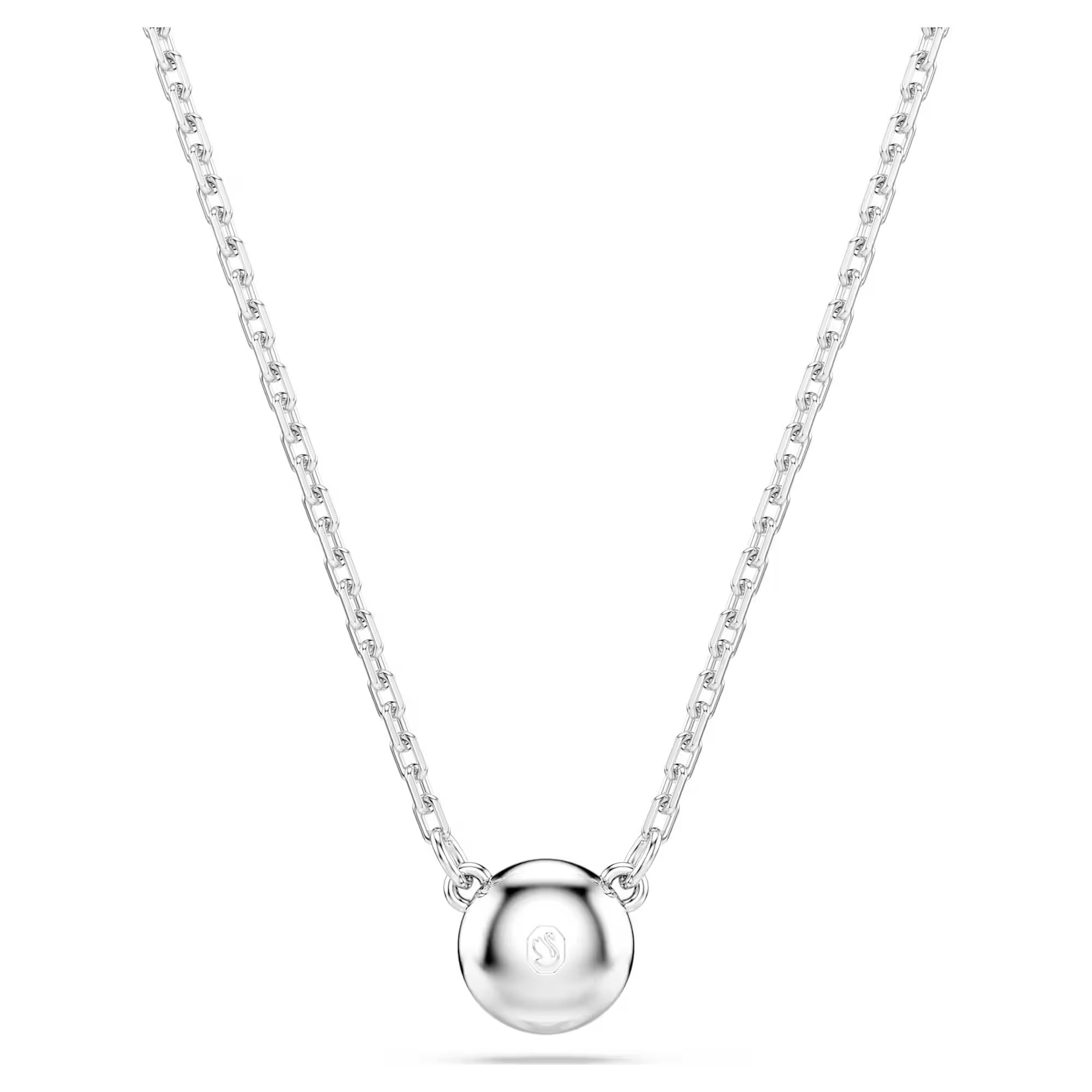 Effortless elegance is within reach thanks to this radiant Imber pendant. Suspended from a delicate chain with a lobster closure, the rhodium plated design features a central round-cut crystal in a puffy bezel setting. A single Swarovski Zirconia is also placed in the elongation for added radiance. Wear this piece to elevate your everyday style.