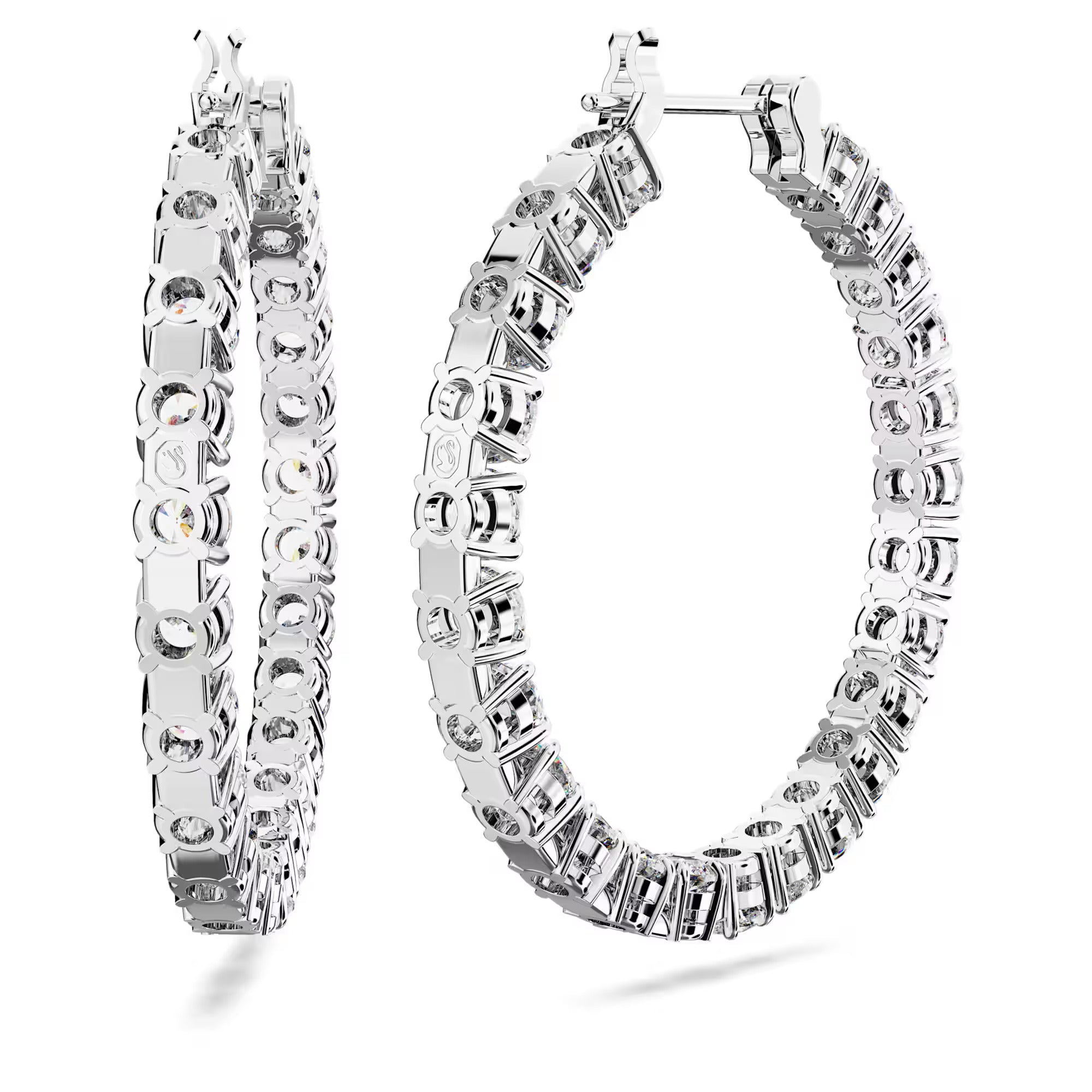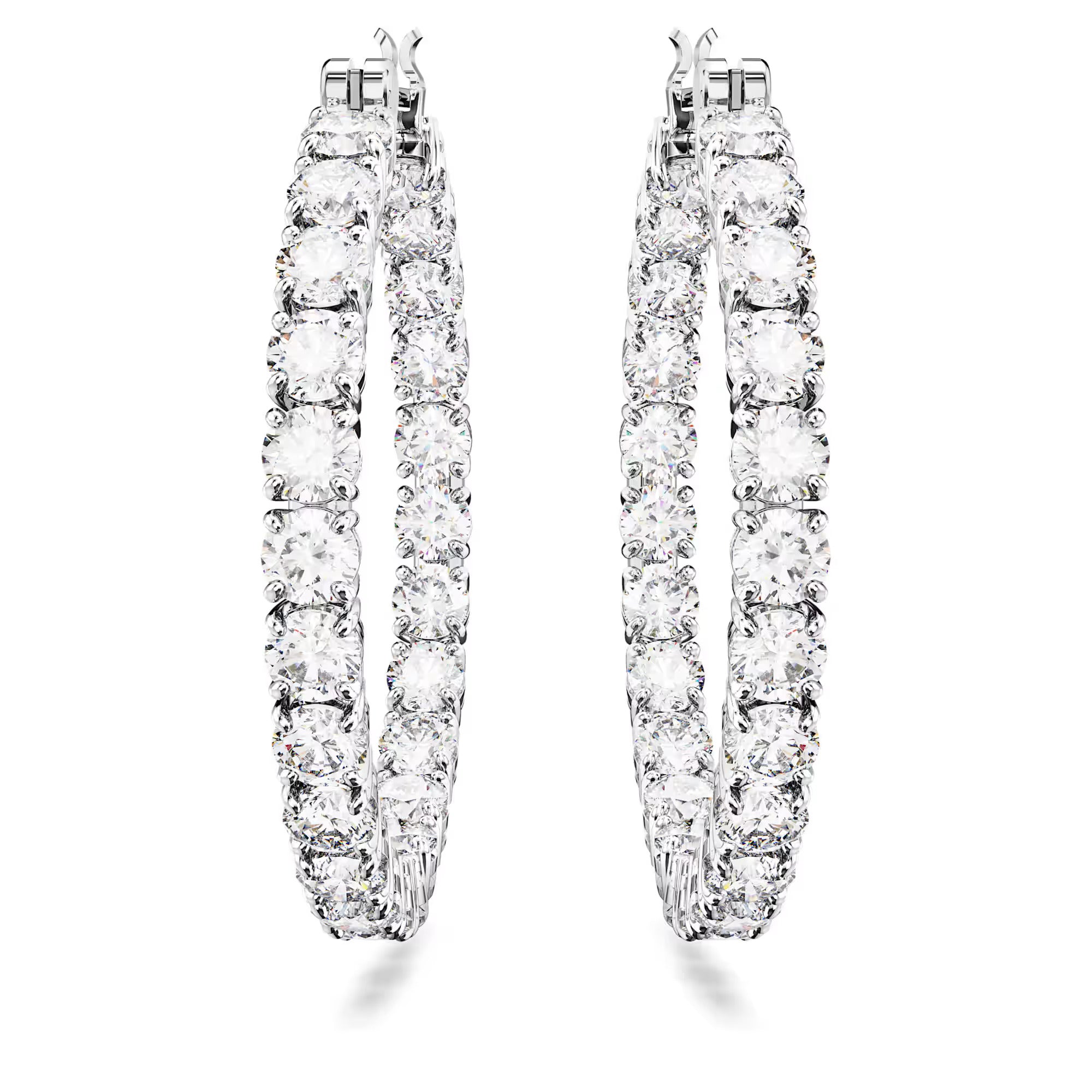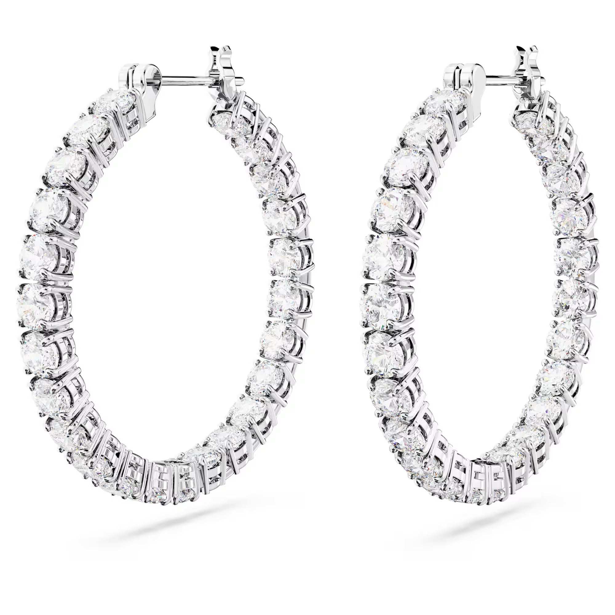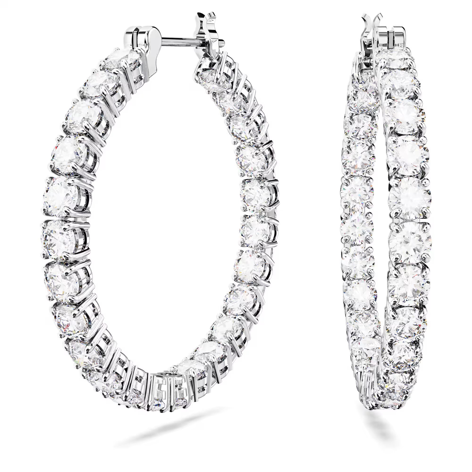 These perfectly formed Matrix hoop earrings are defined by the timeless look of clear round stones and rhodium plated metal. It’s a radiant combination that is essential to any jewelry box. Reach for these hoops to deliver perfect circles of radiance to any outfit.