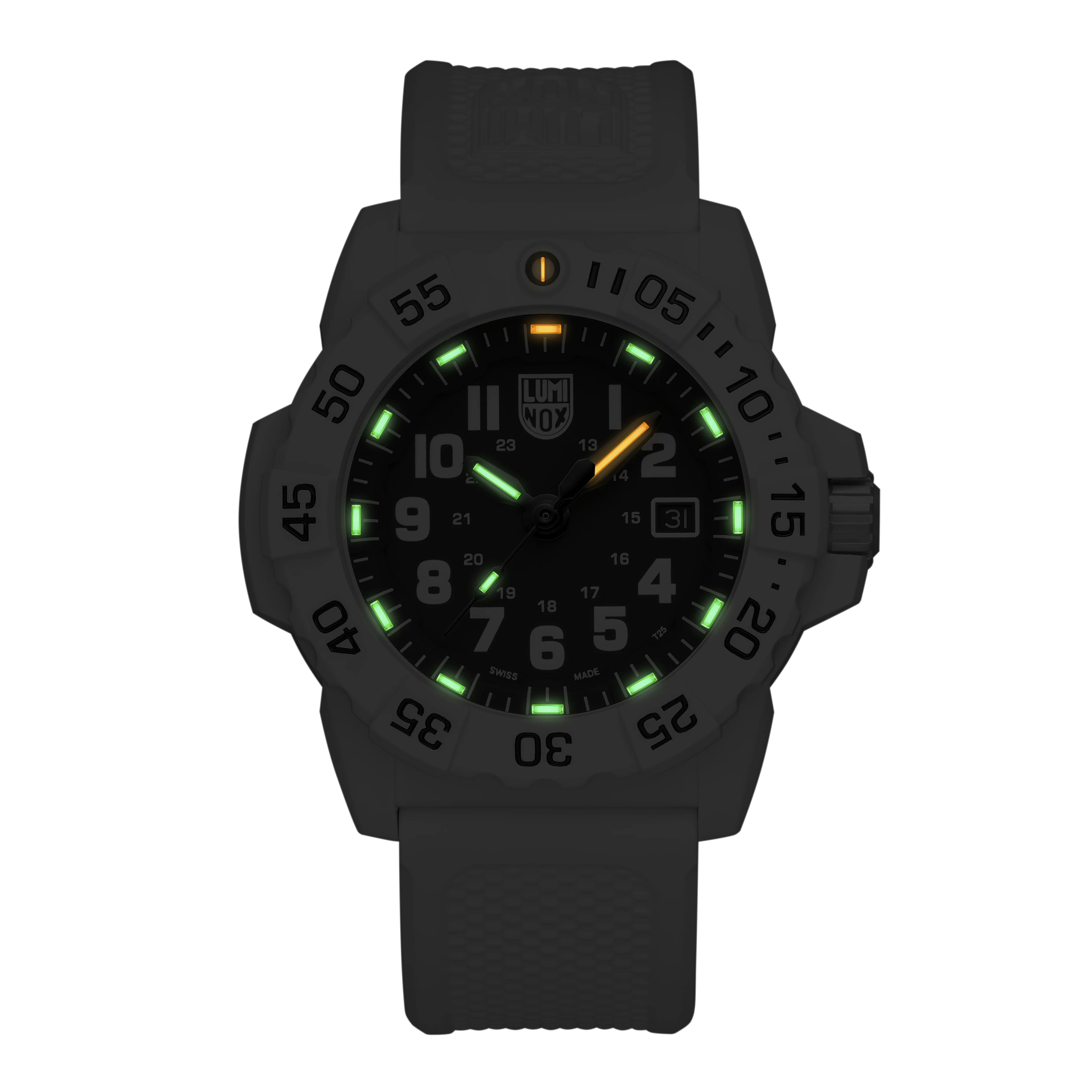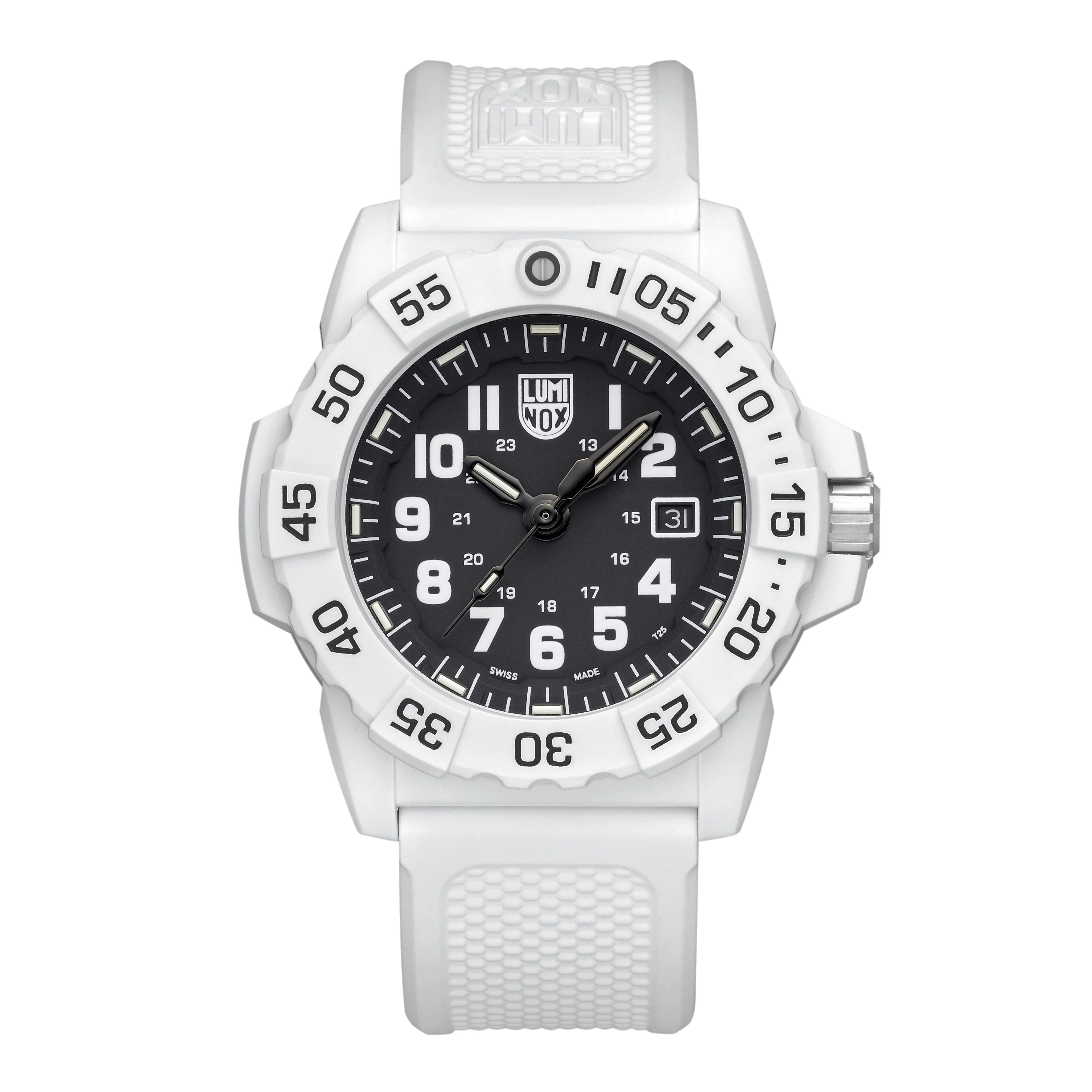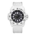 This Arctic Edition, a striking white timepiece with a contrasting black dial, maintains the rugged reliability of the iconic Navy SEAL 3500 Series. The bold timepiece introduces a lightweight white fiberglass 45mm case and uni-directional bezel, designed for durability while enhancing stealth in arctic environments. The black dial with white numerals ensures maximum readability in daylight, while Luminox Light Technology (LLT) provides constant visibility in complete darkness for up to 25 years, critical for missions in low-contrast environments. A white genuine rubber strap offers a secure, comfortable fit, while the unidirectional rotating bezel allows precise tracking of elapsed time, making it an essential tool for military personnel and Arctic explorers alike. Whether navigating icy terrains or facing tactical challenges, the Navy SEAL 3500 – Arctic Edition is engineered for peak performance in the most demanding conditions.