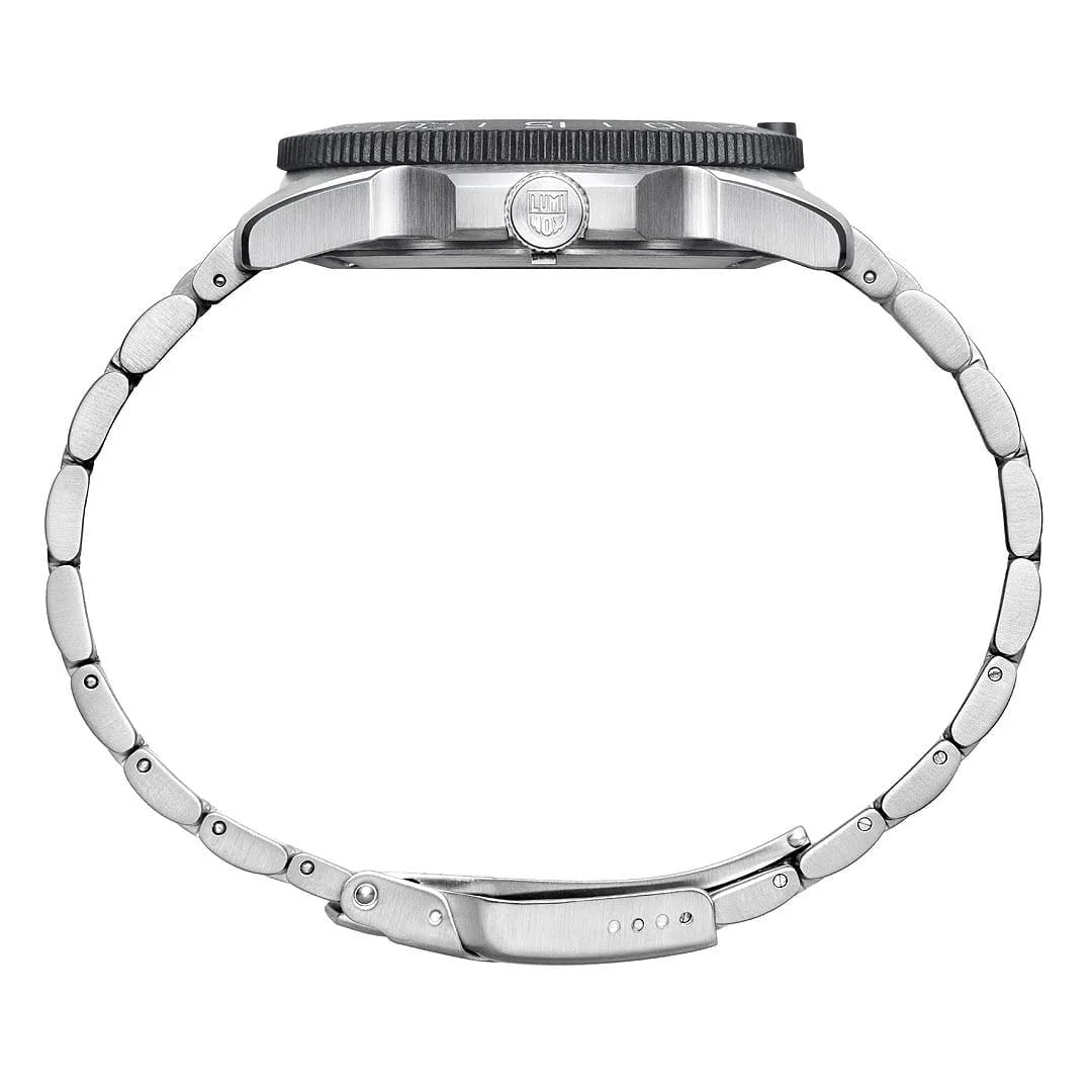The Luminox Pacific Diver XS.3122 blends rugged functionality with refined design, making it perfect for both outdoor exploration and everyday wear. Crafted with a stainless steel case and a CARBONOX™ unidirectional rotating bezel, this watch offers a striking fusion of strength and lightweight performance. Its black dial with white numerals and luminous hands ensures excellent readability, while the sapphire crystal with anti-reflective coating provides superior scratch resistance. Powered by a Swiss Quartz movement, the XS.3122 delivers precise timekeeping and is water-resistant up to 200 meters, making it ideal for diving and water sports. With Luminox Light Technology (LLT), the watch glows continuously for up to 25 years, ensuring visibility in complete darkness. The stainless steel bracelet adds a sleek, professional finish, making this timepiece versatile for both adventure and style.