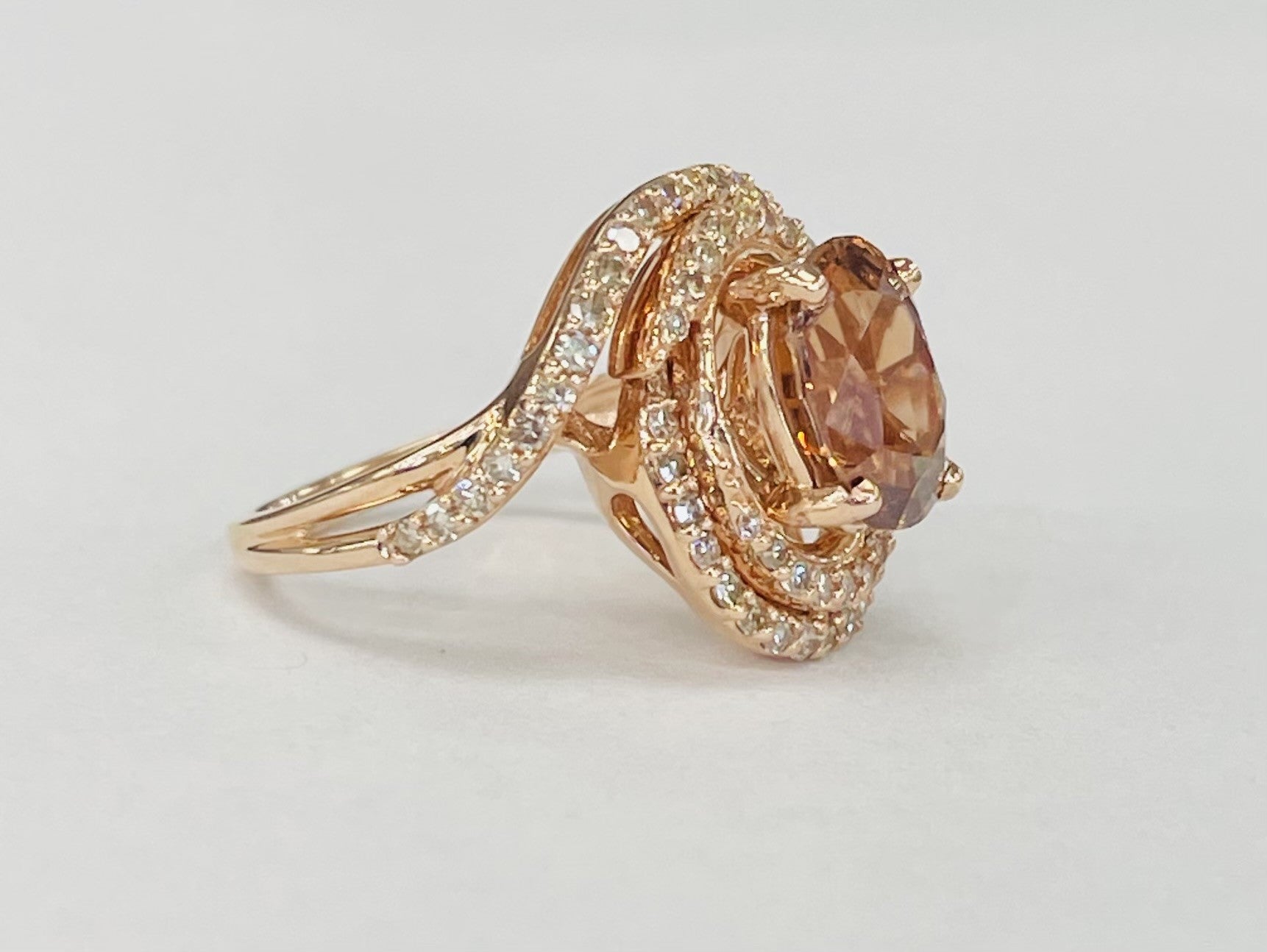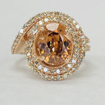 Rose Gold Double Halo Twist Orange Zircon And Diamond Ring