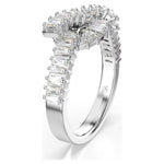 Swarovski Matrix ring Baguette cut, Knot, White, Rhodium plated