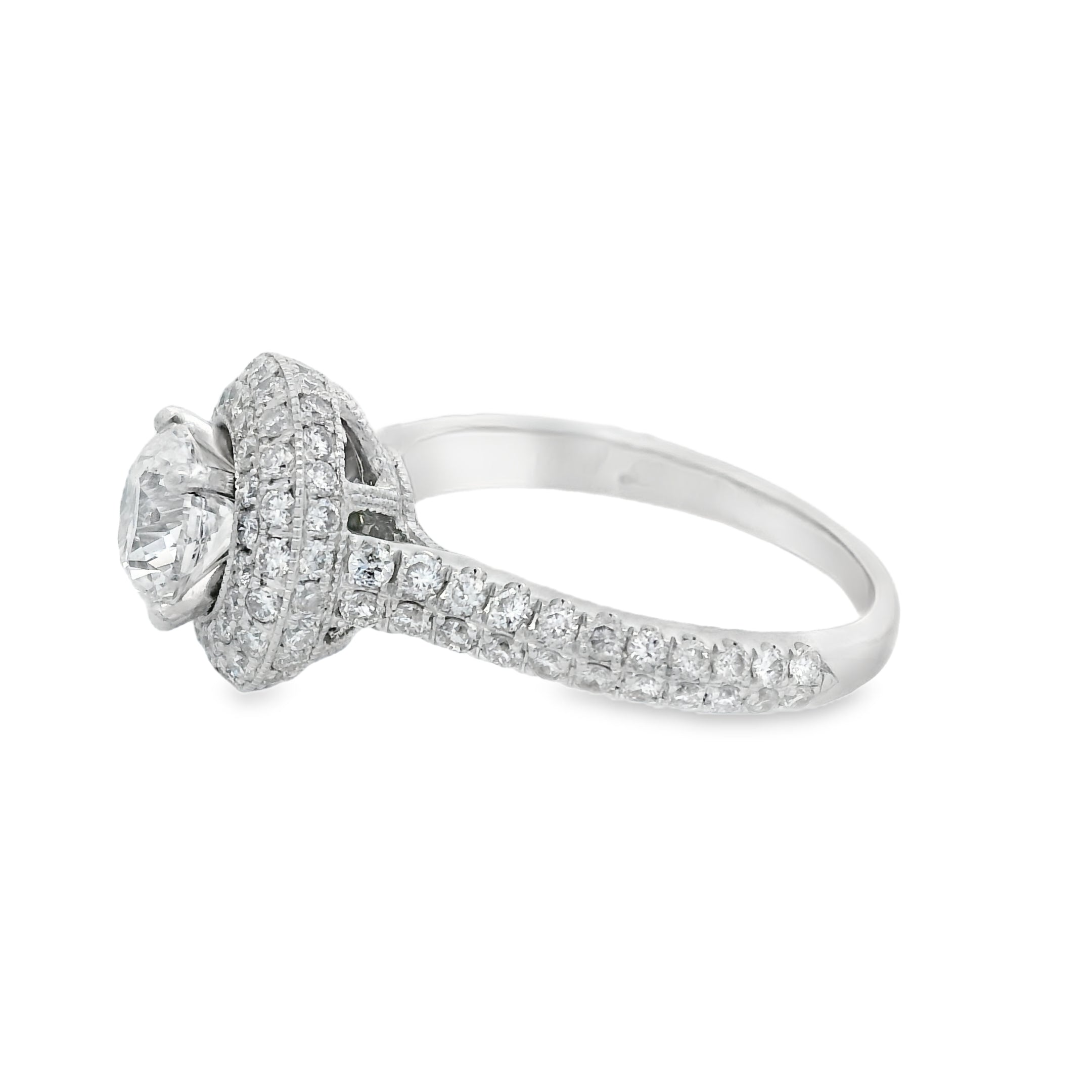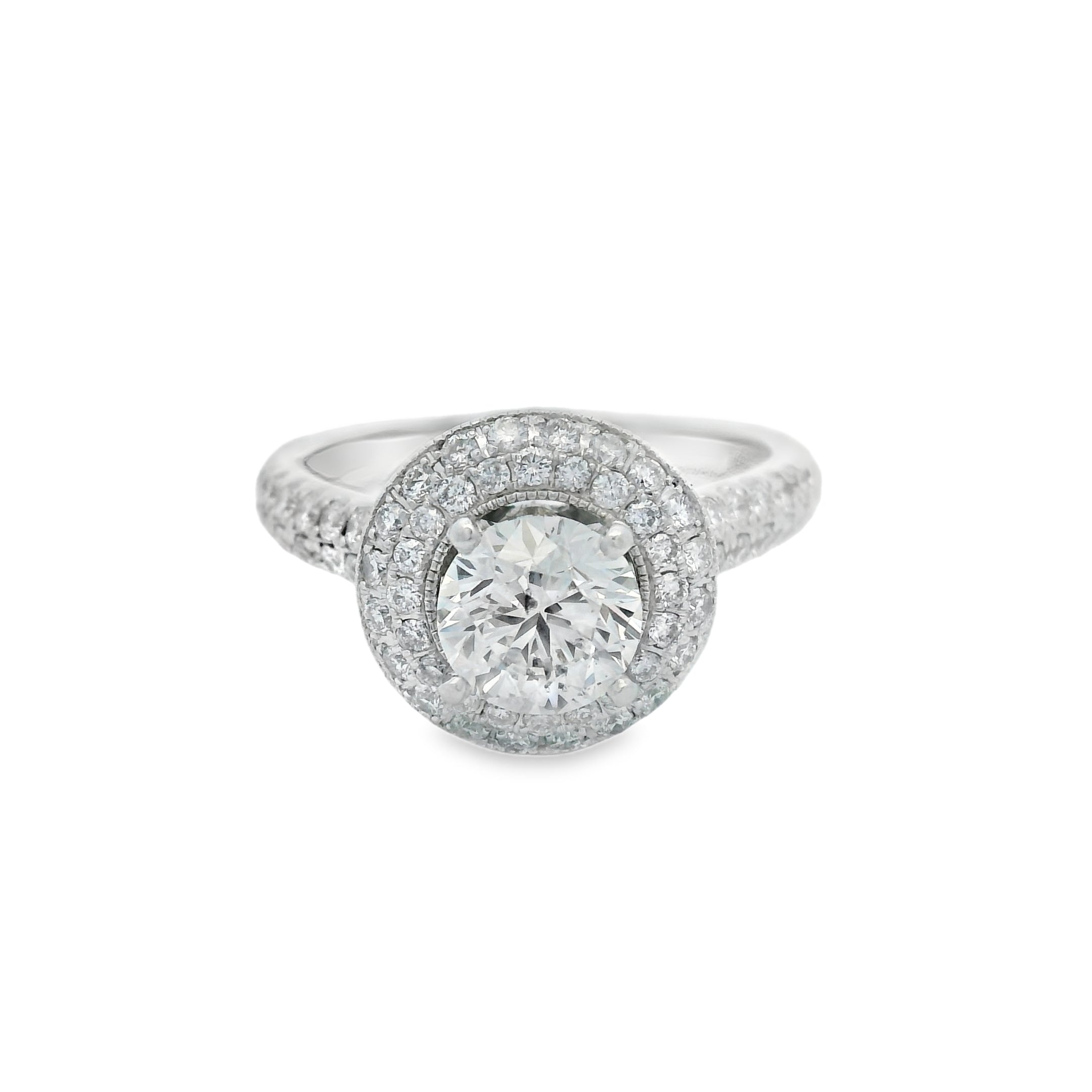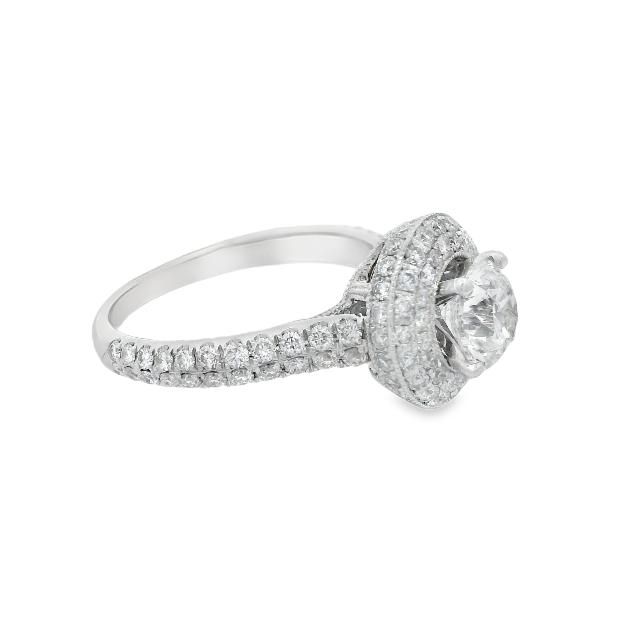 White Gold Neil Lane 1 1/2CTW Pave Halo Certified Diamond Engagement Ring