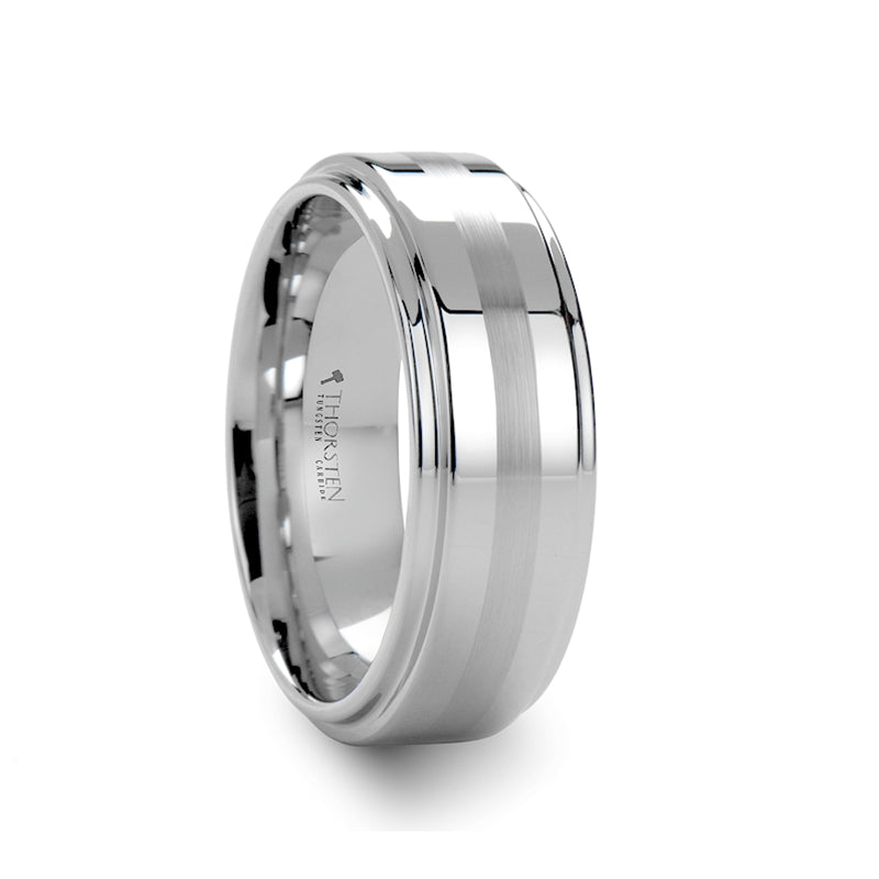 Brushed Stripe White Tungsten Carbide Ring with Raised Center