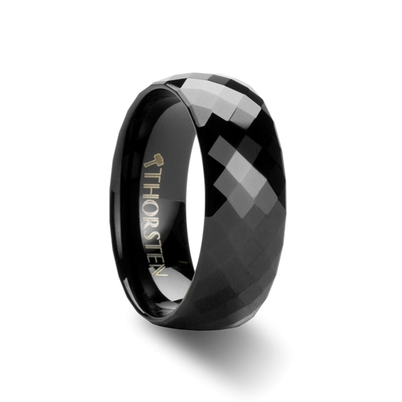 Black Diamond Faceted Tungsten Carbide Ring