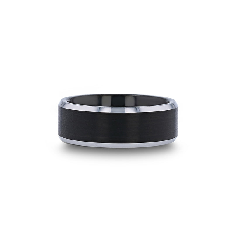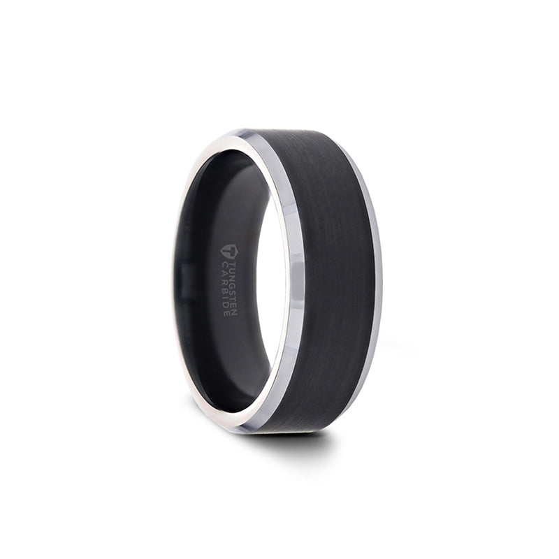 Black Brushed Center Tungsten Carbide Ring with Polished Beveled Edges