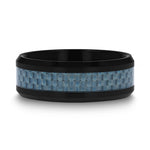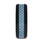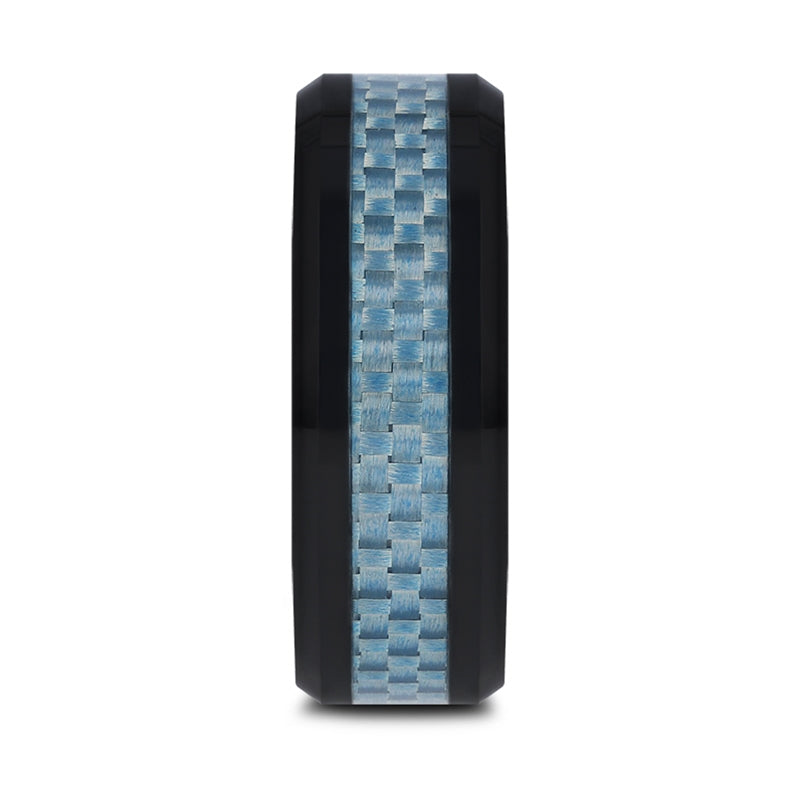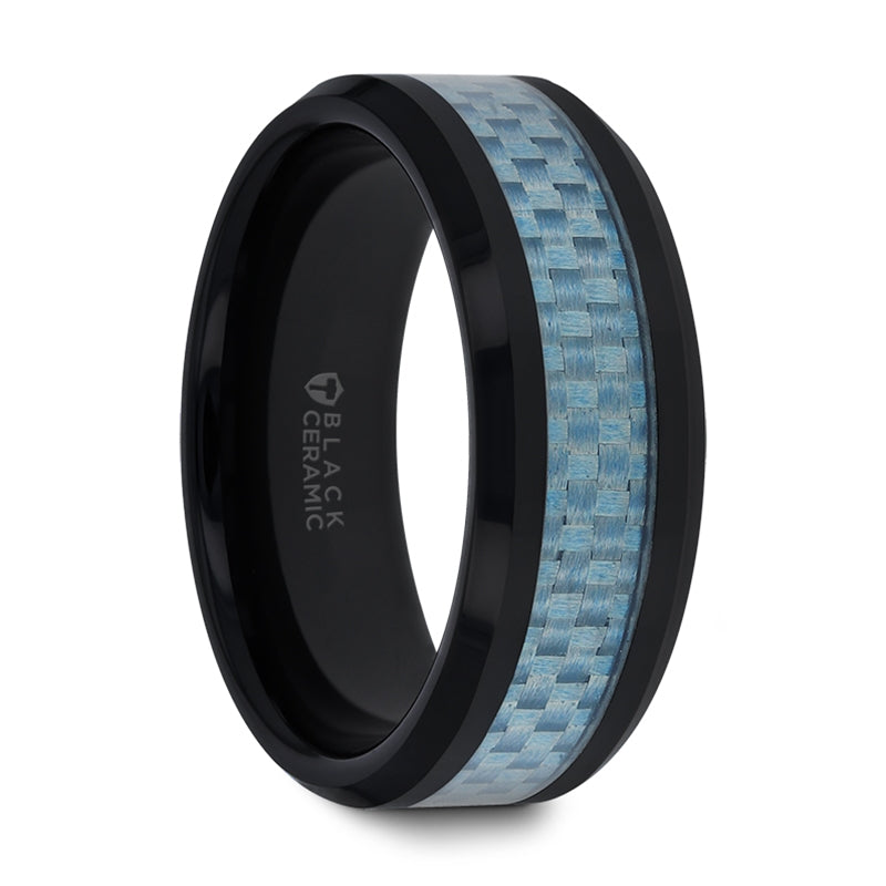 Blue Carbon Fiber Inlaid Black Ceramic Ring with Bevels