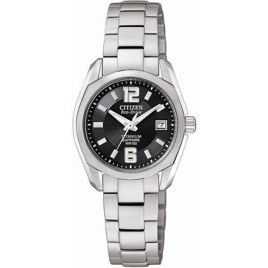 Citizen Eco-Drive EW2100-51E – Titanium Bracelet, Black Dial Ladies’ Watch (WR100)