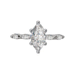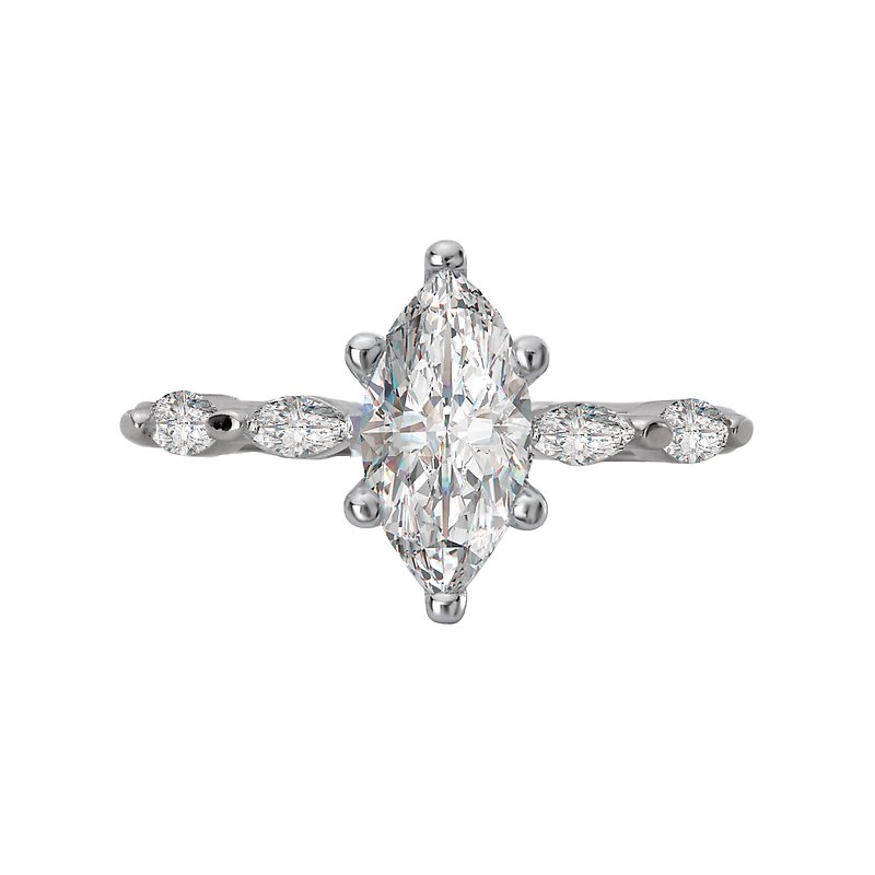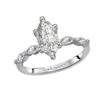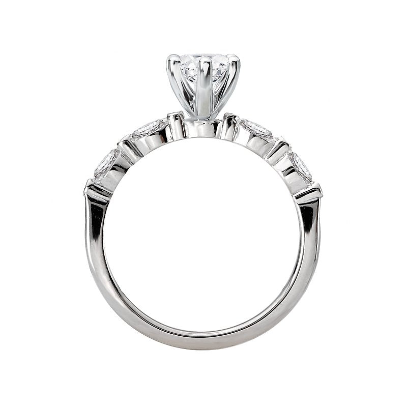 Dazzling engagement ring created in high polished 14kt white gold showcases marquise sparkling diamonds surrounding the center setting that will accommodate a 10x5mm marquise diamond. (D 1/4 carat total weight)