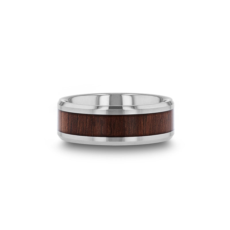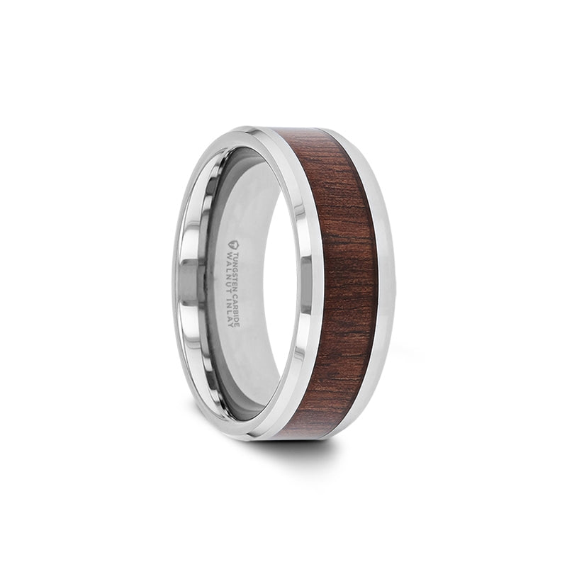 Beveled Tungsten Carbide Ring with Black Walnut Wood Inlay
