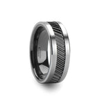 Gear Teeth Pattern Black Ceramic and Tungsten Carbide Ring