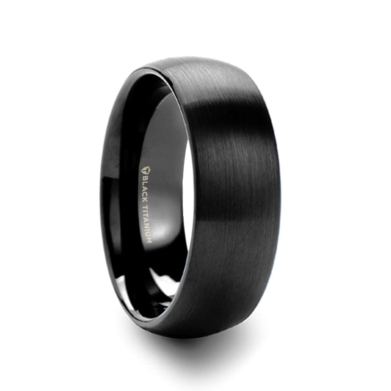 Domed Brushed Finish Black Titanium Men’s Wedding Band