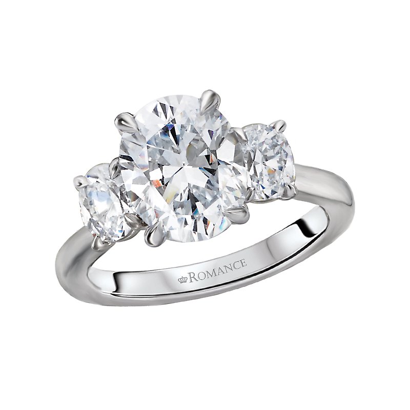 The Romance #160086 semi-mount engagement ring is a stunning lab-grown diamond design crafted to your specifications. Featuring two 5 × 3.8mm oval-shaped lab-grown diamonds flanking the center, this elegant setting is designed to hold a 9.5 × 7.5mm oval center stone. With a total accent diamond weight of 5/8 carat, this ring offers brilliance and sustainability, making it the perfect foundation for your personalized engagement ring. Available in 14K gold, 18K gold, or platinum, it combines timeless artistry with modern ethical luxury.