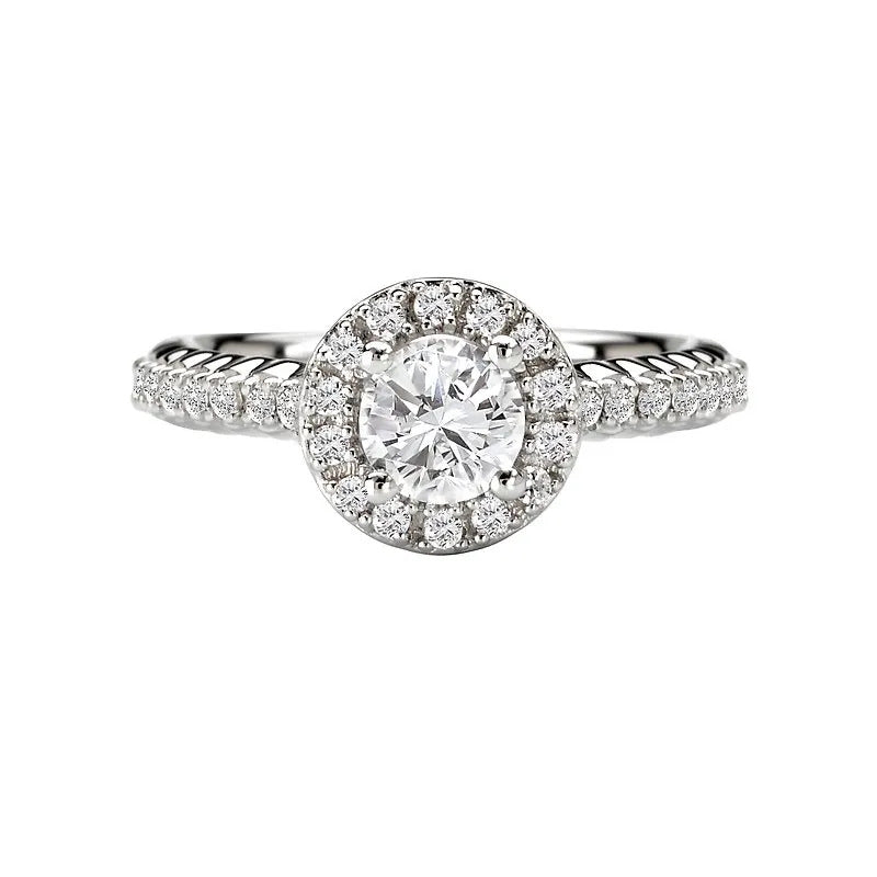 Romance #118002-025S Petite Round Halo Semi-Mount Diamond Engagement Ring in 14K White Gold