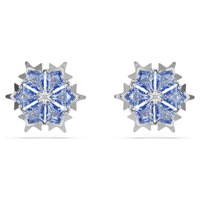 Swarovski Magic stud earrings Snowflake, Blue, Rhodium plated