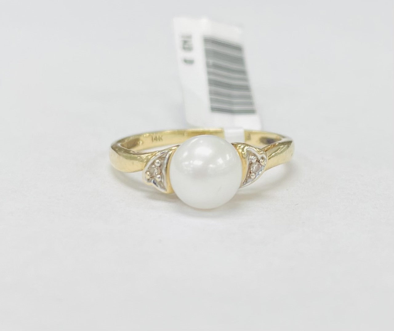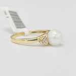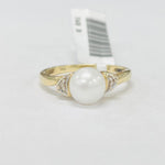 This simple but stunning ring features a beautiful white pearl in the center. Accented by diamonds and made out of yellow gold to make all the stones pop, is what really makes this ring.